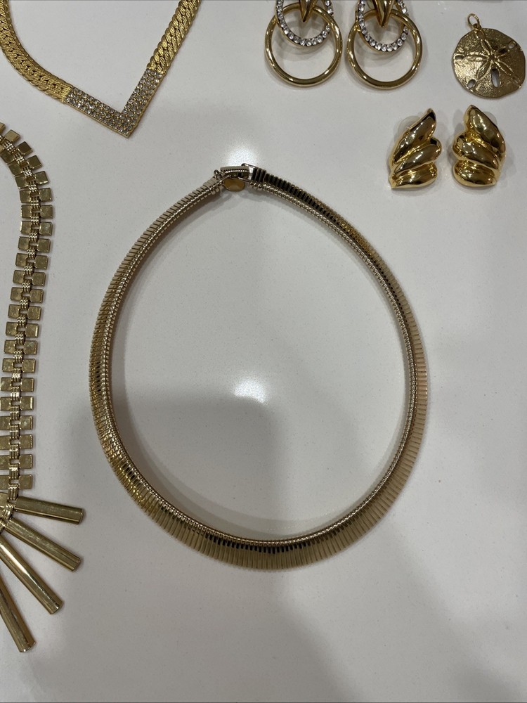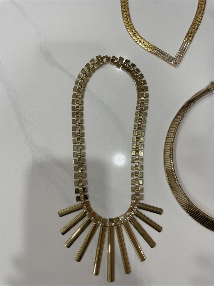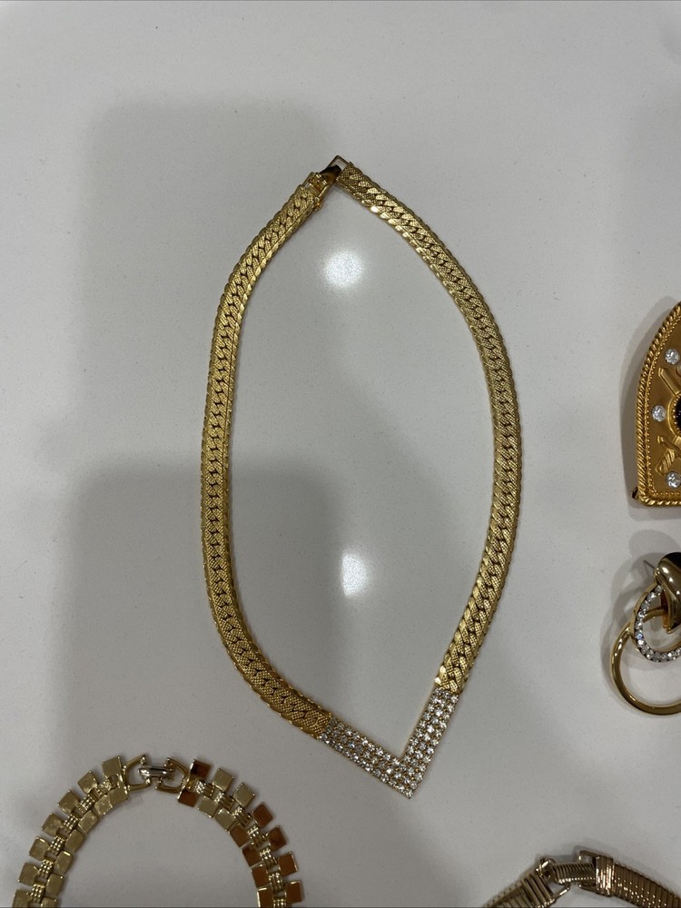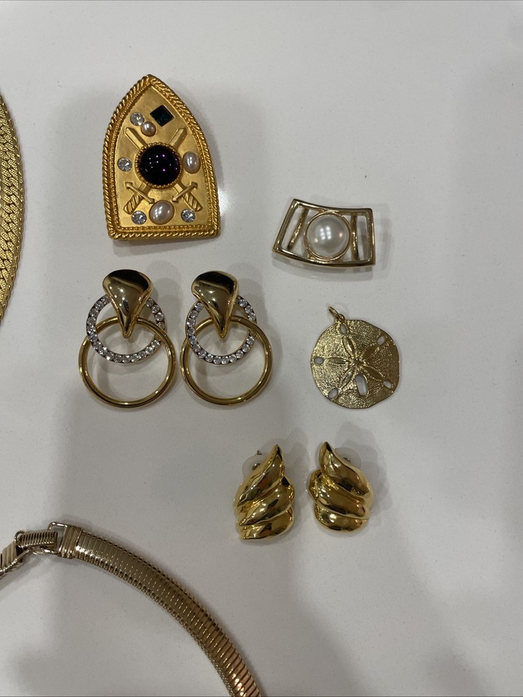 PLEASE SEE ALL PHOTOS THIS IS EXACTLY WHAT YOU WILL BE GETTING SHOWN IN PHOTOS This vintage Park Lane jewelry lot includes 8 pieces in gold, including necklaces, earrings, and a brooch. The set offers a mixed lot of elegant and classic pieces from the trusted brand, perfect for adding a touch of vintage charm to any outfit. The rich gold color adds a touch of luxury to any ensemble, making it a versatile and stylish addition to any jewelry collection.