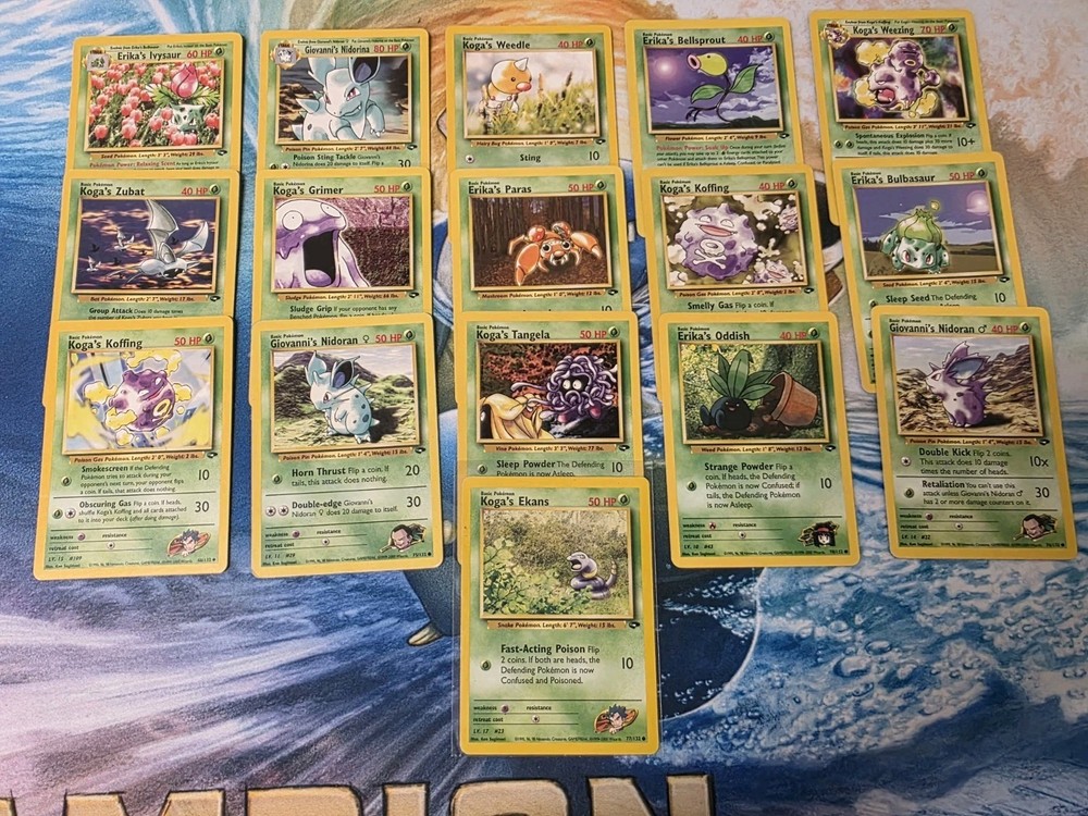 66 common uncommon and rare cards from Gym Challenge. These are leftover from making complete sets for clients. Most of these cards are in NM-LP condtition. There will be a couple MP if they were the last copy we had of the card. These cards are going up in price currently. Get them before they are even more expensive. If you have any questions please message me. Check out our other lots and sets. We try to change them out every week. Thanks!