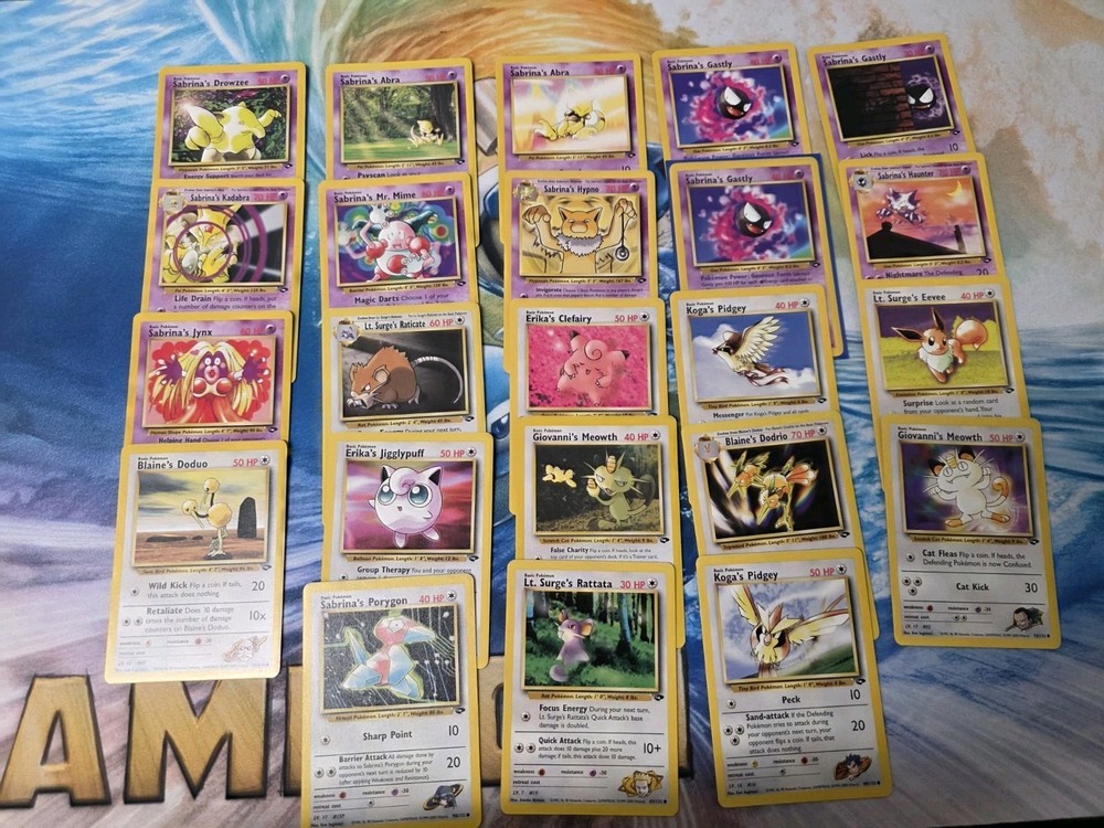 90 common uncommon and rare cards from Gym Challenge. There is 3 rares in this lot. These are leftover from making complete sets for clients. They are im mostly NM-LP condition. Some will be MP bc they would have been the only copy we had leftover. These cards are going up in price currently. Get them before they are even more expensive. If you have any questions please message me. Check out our other lots and sets. We try to change them out every week. Thanks!
