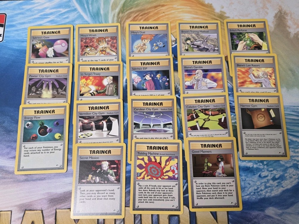 77 common uncommon cards from Gym heroes. These are leftover from making complete sets for clients. They are mostly all NM-LP. There will probably be a cpuple MP if they were the last copy we had. These cards are going up in price currently. Get them before they are even more expensive. If you have any questions please message me. Check out our other lots and sets. We try to change them out every week. Thanks!