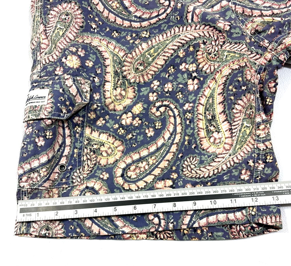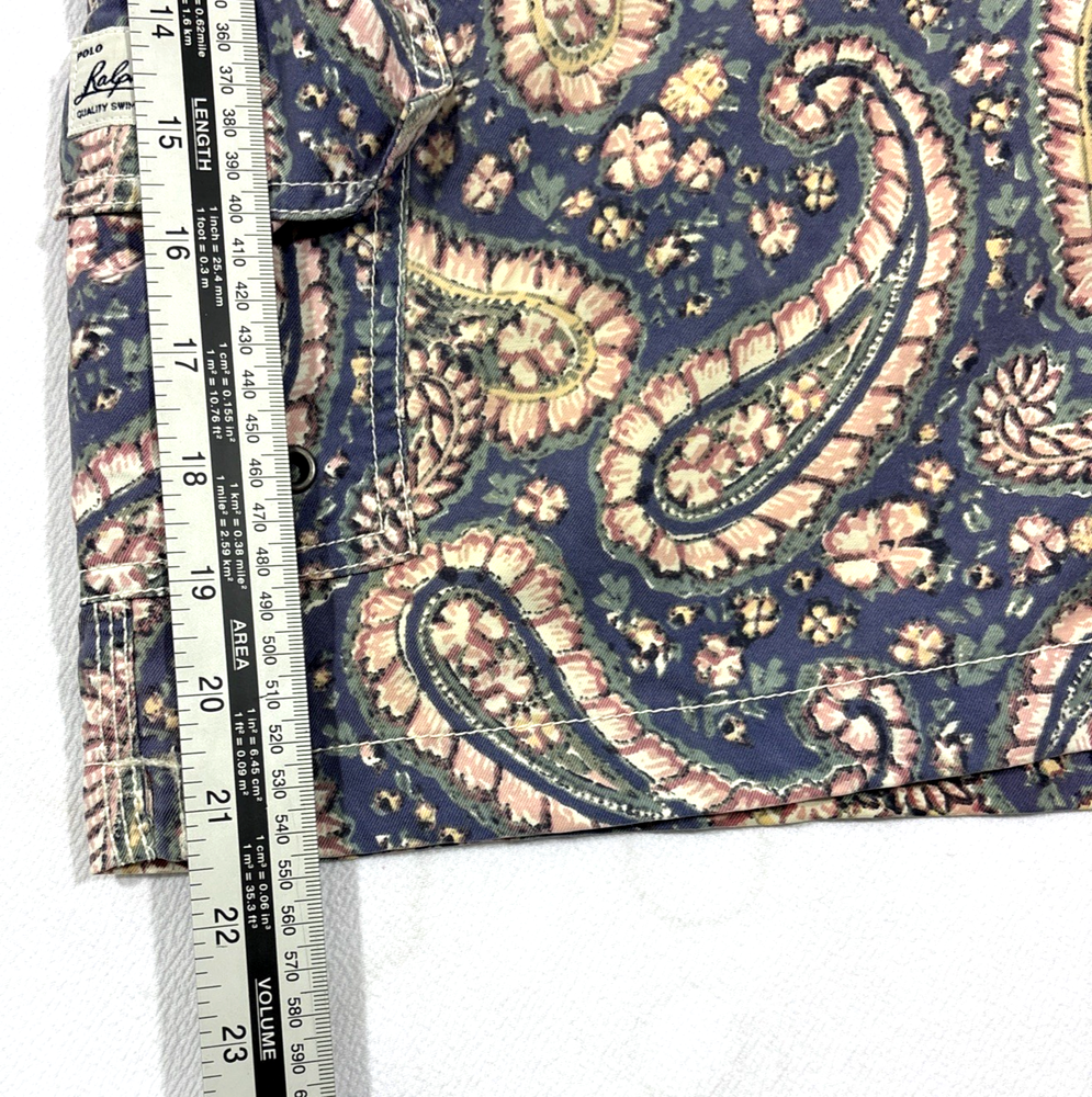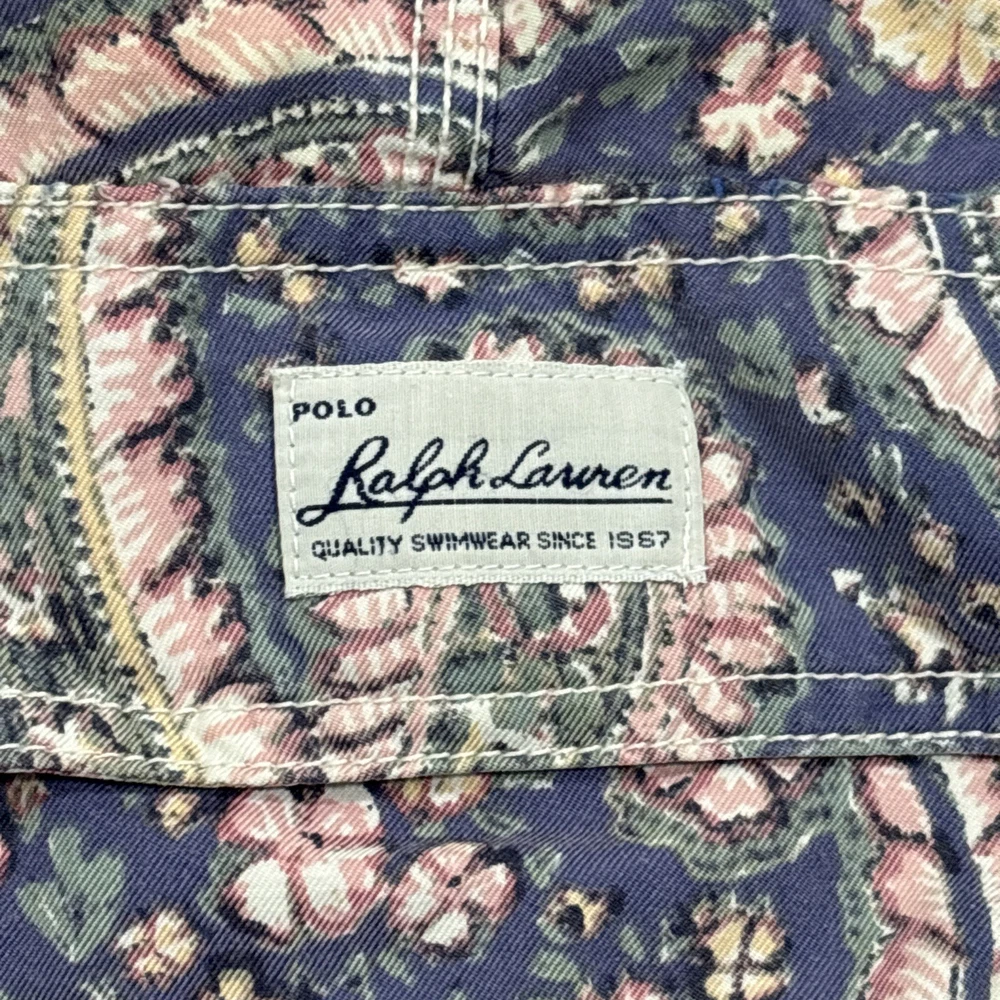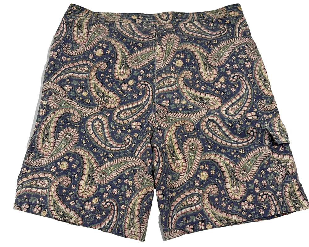 VINTAGE Polo Ralph Lauren Swim Shorts Mens XL Blue Paisley Lined Swimwear EUC