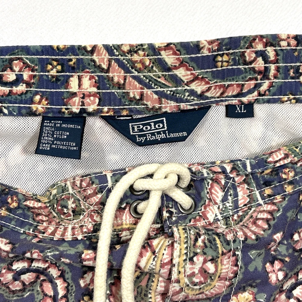 Type: Bottom Garment Care: Machine Washable Swim Bottom Style: Swim Shorts Theme: Beach Features: Breathable, Comfortable Fit, Lined, Pockets Lining Material: Polyester Color: Blue Pattern: Paisley Size: XL Material: Cotton, Cotton Blend, Nylon Seller Notes: “No flaws, in great condition, see pics” Size Type: Regular Performance/Activity: Lifeguard, Recreational, Surfing Brand: Polo Ralph Lauren Fabric Type: Mesh Country of Origin: Indonesia Personalize: No Department: Men Vintage: Yes