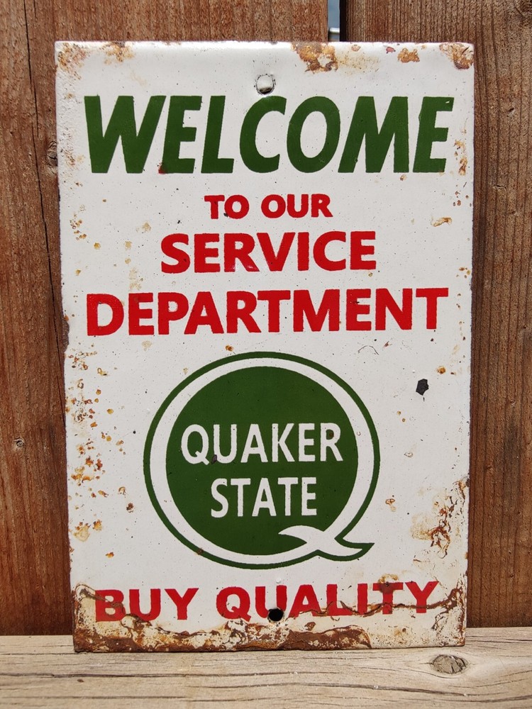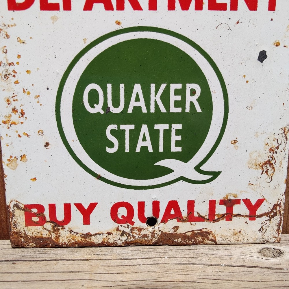 The Vintage Quaker State Oil Porcelain Enamel Metal Gas Oil Sign is a 6" x 4" collectible advertising piece with a multi-color design. This original sign featuring the Quaker State brand is a nostalgic piece that showcases the theme of gas & oil, perfect for collectors of vintage signs. Made in the United States, this sign is a unique and authentic piece of merchandise and memorabilia, adding a touch of history to any space. Picture Says it All, Pls see all pics carefully for your satisfaction before placing bids... Thank You..