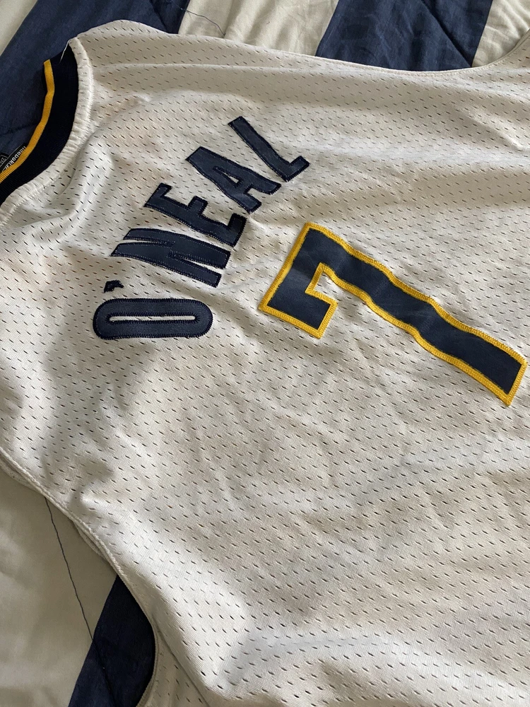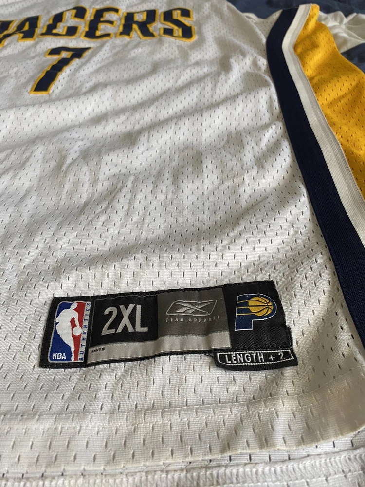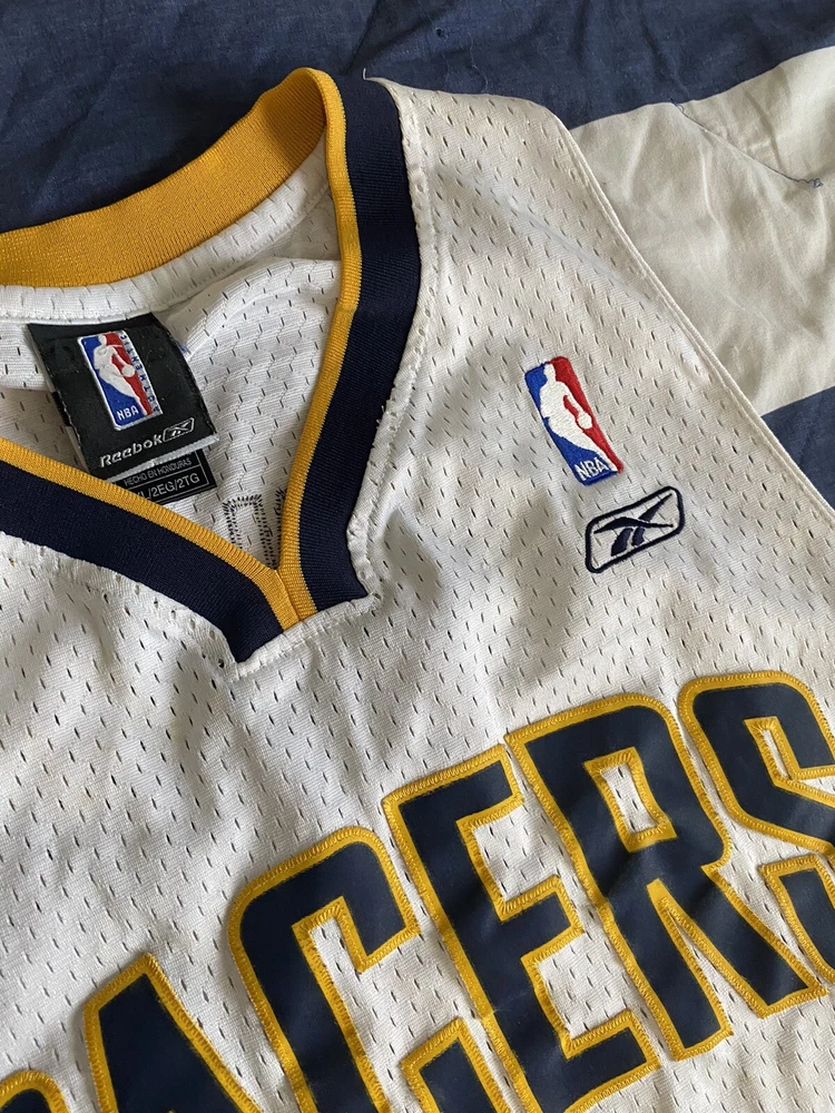 Show your love for the Indiana Pacers and basketball legend Jermaine O'Neal with this vintage Reebok jersey. Made with high-quality materials and in a classic white color, this jersey is perfect for any fan of the National Basketball Association. The size 2XL jersey features the iconic Reebok logo and is officially licensed by the league. Whether you're a collector or simply looking for a stylish addition to your wardrobe, this jersey is a must-have. Swingman jerseys are designed for men and are perfect for basketball enthusiasts. Made in Honduras, this jersey is a high-quality product that will last for years to come. Get your hands on this classic piece of sports memorabilia today!
