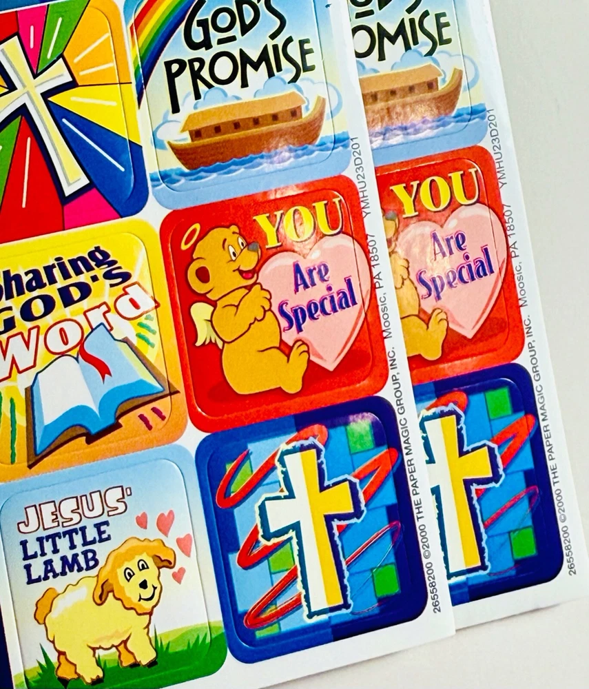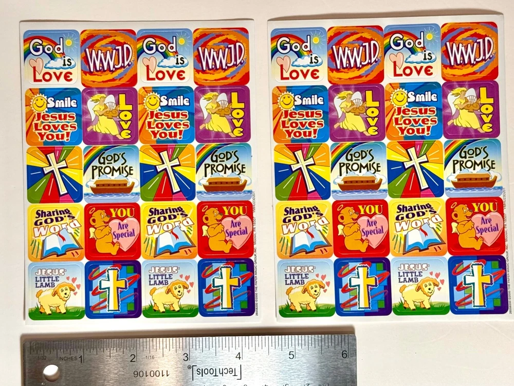 Elevate your personal items with a touch of spirituality using the VINTAGE (Year 2000) Religious Faith God Jesus Rainbow Cross Lamb STICKERS Sheet. Includes: 2 New Full Sticker Sheet Qty. 40 Stickers