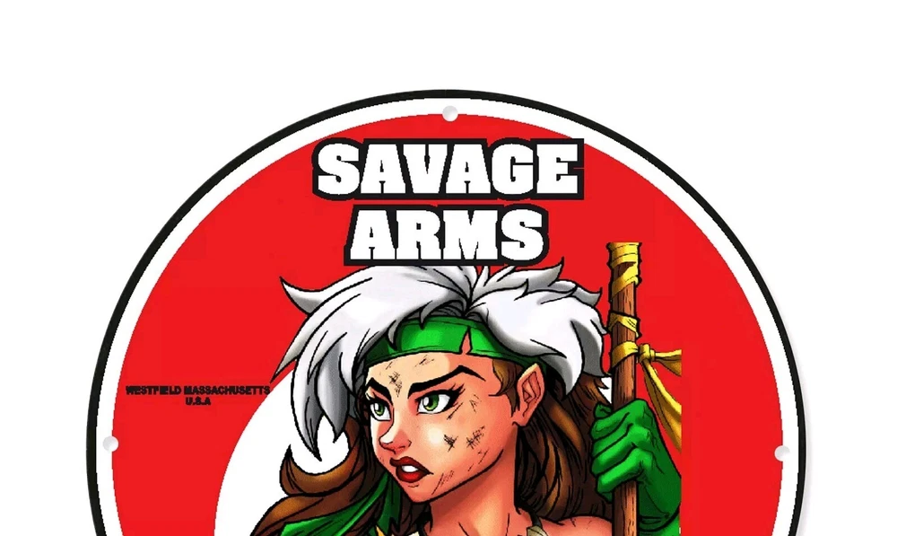 VINTAGE SAVAGE ARMS GUNS RIFLES SNIPERS PISTOLS PINUP GIRL PORCELAIN ENAMEL SIGN