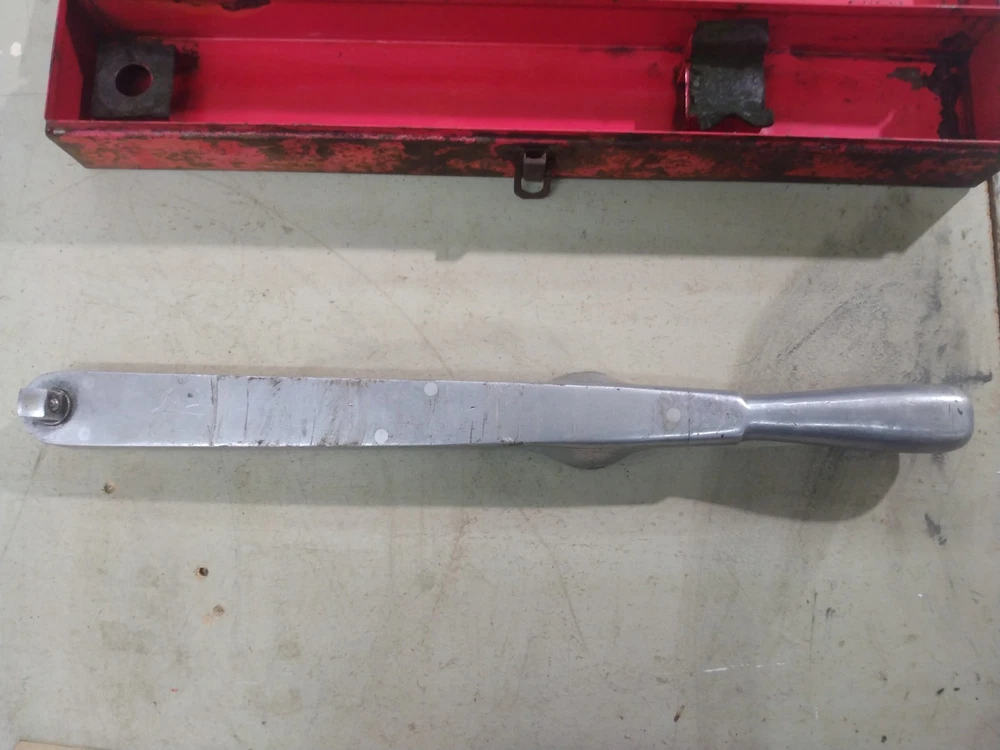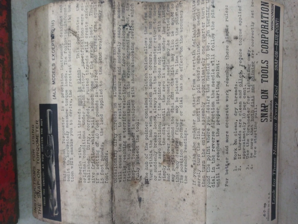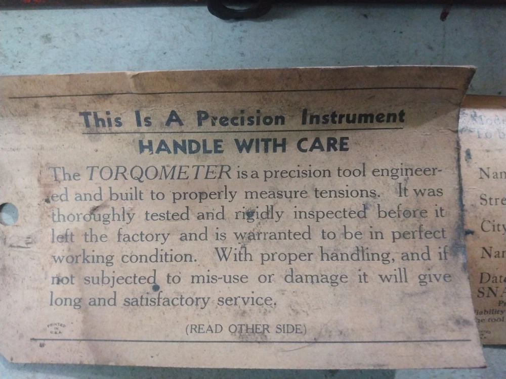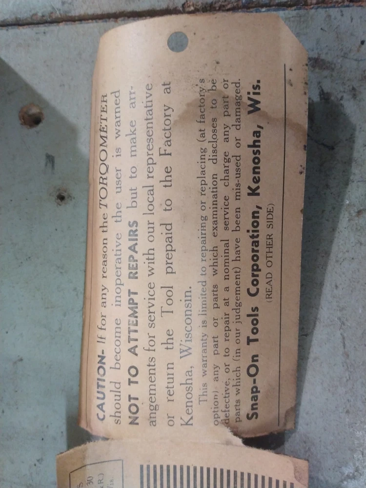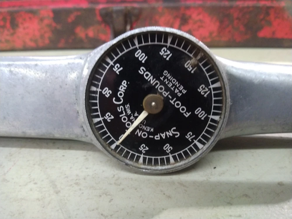 This is a vintage Snap-On TQ15 1/2" drive Torqometer torque wrench with a range of 0-150 ft-lbs. Measures 27" long. Manufactured in the United States. Comes with metal case. Case has rust as shown in the pics. Also comes with instructions and warranty card. This has not been tested. Missing lens on gauge. Being sold for parts or repair.