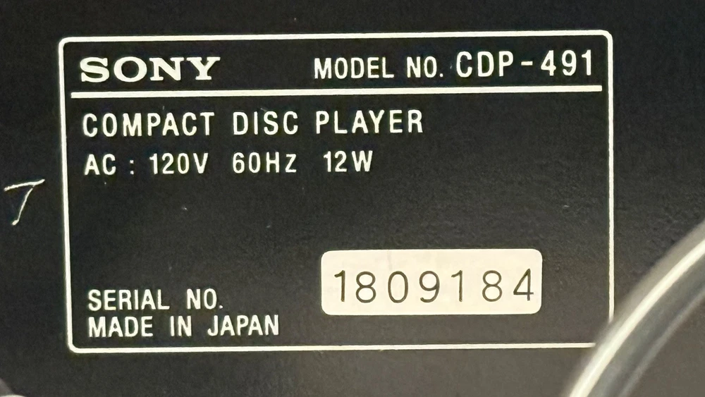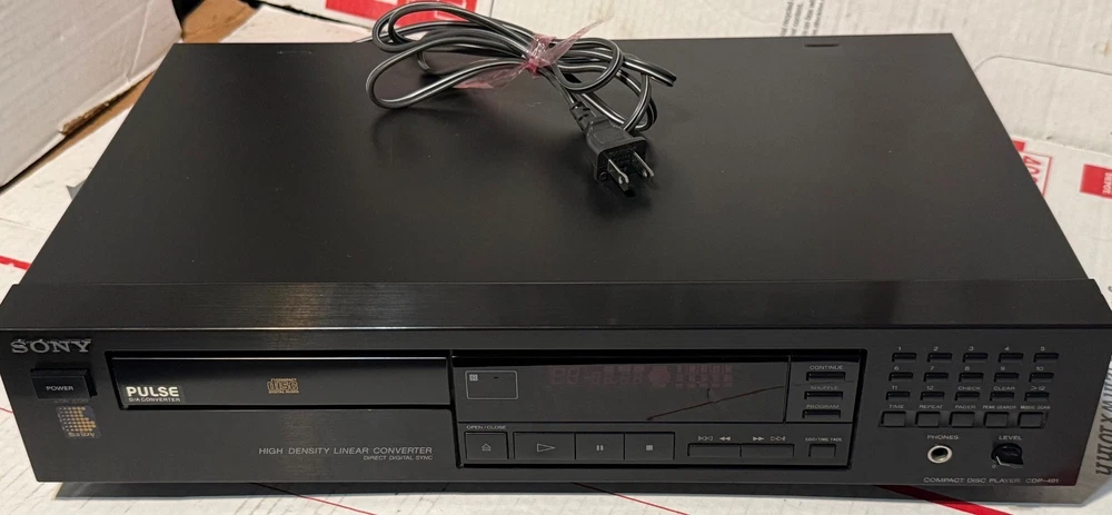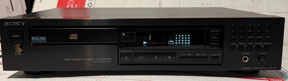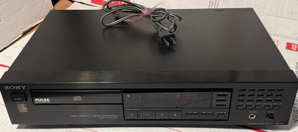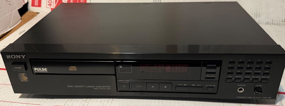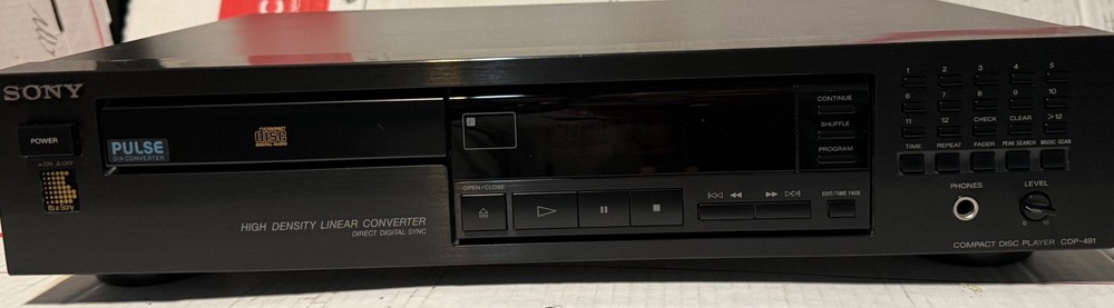 SONY CDP-491 CD PLAYER - HIGH DENSITY LINEAR CONVERTOR MADE IN JAPAN! (PLEASE SEE ALL PHOTOS.) THIS CD PLAYER HAS BEEN TESTED AND WORKS AS IT SHOULD AND SOUNDS GREAT! -THIS SET COMES WITH EVERYTHING PICTURED. (PLEASE SEE ALL PHOTOS.) THIS SET DOES NOT COME W/ A REMOTE CONTROL.. THIS WAS RARELY USED AND IS IN VERY GOOD CONDITION. TRULY SOUNDS GREAT WITH A TON OF DETAIL FOR ANY AUDIOPHILE OR MUSIC LOVER. VERY GOOD CONDITION. MINOR WEAR OTHERWISE LOOKS GREAT. THERE ARE SOME VERY MINOR SCUFFS . (PLEASE SEE ALL PHOTOS.) OTHER THEN THAT, VERY GOOD CONDITION. (PLEASE SEE ALL PHOTOS.) SHIPPING TO LOWER 48 STATES ONLY. CANNOT SHIP TO ALASKA, HAWAII, OR PUERTO RICO. I will get this delivered to you ASAP. It will be shipped out same day or next business day. Thanks for looking!!! Please take a look at my other Auction listings:) Have a great day:)