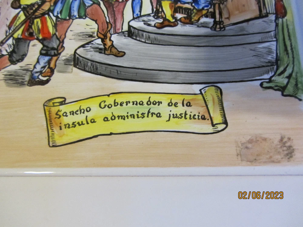 Add a touch of Spanish culture to your collection with this vintage hand-painted ceramic tile featuring the iconic character Don Quixote. Measuring 6 inches in length, width, and height, this small but stunning painting is unframed and made with acrylic paint technique. The tile is an original piece, not a licensed reproduction, and signed by an unknown artist. The theme of the painting is perfect for art lovers who enjoy exploring different cultures, especially Spanish culture. The material used is ceramic, making it durable and long-lasting. This unique item is perfect for adding a pop of color and culture to any room and is sure to be a conversation starter.