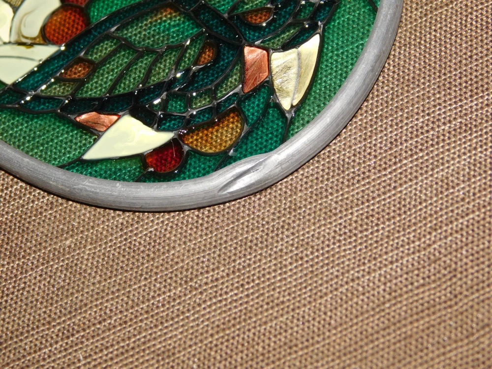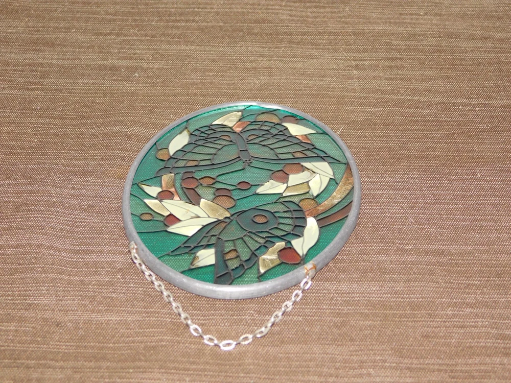 YOU ARE BIDDING ON..... VINTAGE STAINED GLASS PANEL 4 1/2" HIGH BUTTERFLY FLOWER WINDOW HANG SIGN SOME PREVIOUS DISPLAY WEAR/LIGHT SCRATCHES ... PLEASE VIEW PHOTOS FOR CONDITION.***PLEASE E-MAIL IF YOU HAVE A QUESTION OR WANT AN ADDITIONAL PICTURE....PLEASE VISIT MY EBAY STORE FOR ADDITIONAL VINTAGE ITEMS..THANK YOU***12VBX1849-XXXX