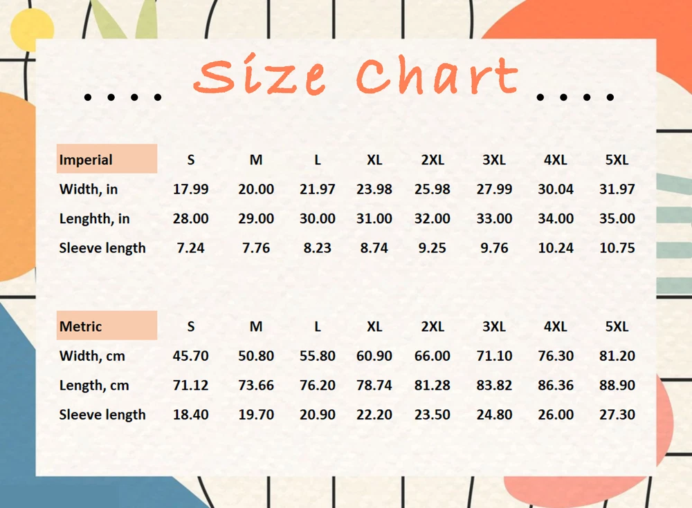 WELCOME TO OUR STORE If you are looking for a shirt for yourself or a gift for a loved one, our store is the perfect place to help you do it. We have a wide variety of t-shirt designs for you to choose from. We have attached the size chart so you can choose the right size. DESCRIPTION: Brand: Gildan Decoration type: Digital Print Material: 100% Cotton Available sizes: S, M, L, XL, 2XL, 3XL, 4XL (we also have 5XL if you request) SHIPPING: We proudly as American based company ship to the lower 48 states. SERVICE: Due to lighting effect and computer color, the actual color may be slightly different from the picture. Hope for your understanding on this. But customers who have used our products are very satisfied with the products they receive from us. We do not accept returns of goods for the following reasons: Customers choose the wrong size. we only accept return for damage or bad printing result FEEDBACK: The satisfaction of our customers is the first place for us. If you are happy with your purchase, PLEASE take a moment to leave Positive feedback for us. We really appreciate that. If you are not happy with the purchase, PLEASE contact us to resolve the problem. We are always here to give you the best solutions. THANK YOU SO MUCH, HAVE A GOOD DAY!