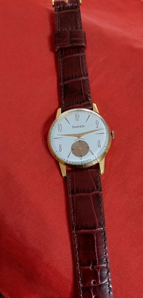 VINTAGE TIFFANI & CO. ART - DECO 1950's WristWatch Movement MANUAL OF COLLECTION BEAUTIFUL WATCH MOVEMENT: ORIGINAL SWISS MANUAL, Tiffany & CO. SIGNED SWISS, 17 JEWELS THIS MOVEMENT IS IN VERY GOOD CONDITION AND IT WORKS PERFECTLY CLEANING SERVICE RECENTLY DONE BY OUR WATCHMAKER DIAL: in tone White and Gold professionally restored, with gold tone hands CROWN: unsigned CRYSTAL: Acrylic. CASE: Plaque 10 Micrones and STAINLESS STEEL ON BACK COVER,SEE PICTURE SIGNED PIAGET, IN VERY GOOD CONDITION SIZE: 36 MM WITHOUT CROWN AND 44 MM FROM LUG TO LUG STRAP: MADE OF LEATHER AND INCLUDED AS GIFT YOU ARE BIDDING ON THE WATCH ONLY, THE BAND IS FREE The large, clear unaltered pictures are an important part of the description. Please look carefully. We check the watch to be certain it keeps time and runs when listed and we re-check before shipping Fast Shipping by DHL EXPRESS!! !! USD 45 With tracking number and insurance ! (DEPENDING ON CUSTOM DELAYS IT COULD TAKE BETWEEN 7/10 BUSSINESS DAY OR EVEN MORE DEPENDING ON THE DISTANCE TO EVERY COUNTRY)