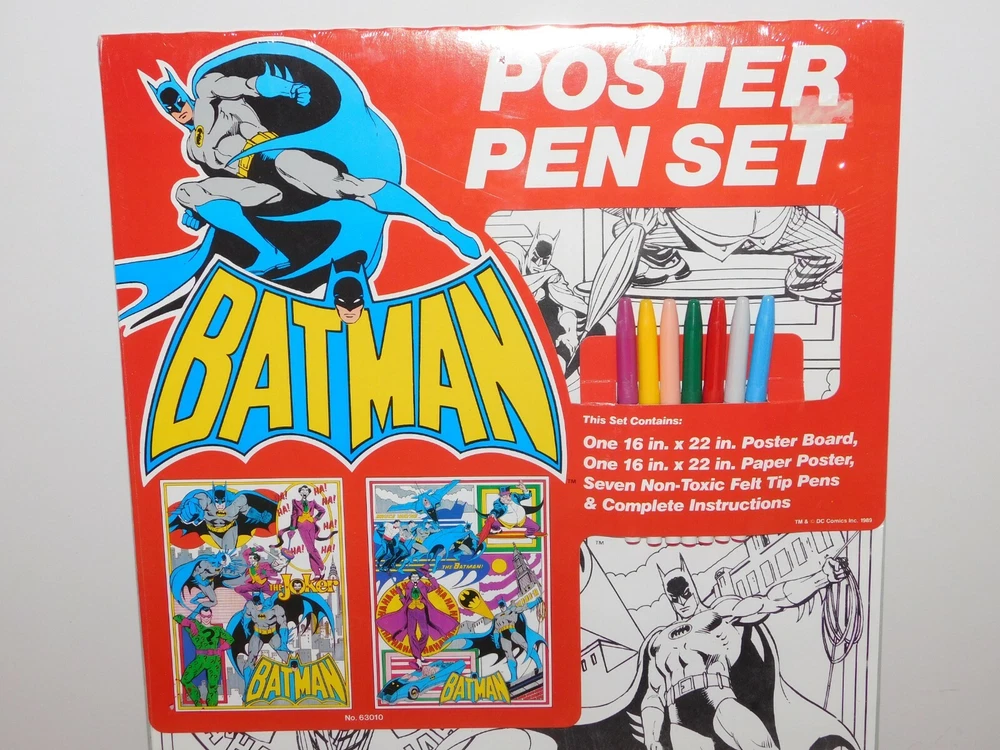 YOU ARE BIDDING ON...... . . .. VINTAGE TOY 1989 BATMAN POSTER PEN SET NEW OLD STOCK ... ...... ...PLEASE VIEW PHOTOS FOR CONDITION.***PLEASE E-MAIL IF YOU HAVE A QUESTION OR WANT AN ADDITIONAL PICTURE....PLEASE VISIT MY EBAY STORE FOR ADDITIONAL VINTAGE ITEMS..THANK YOU***7UBX1212-XXXX