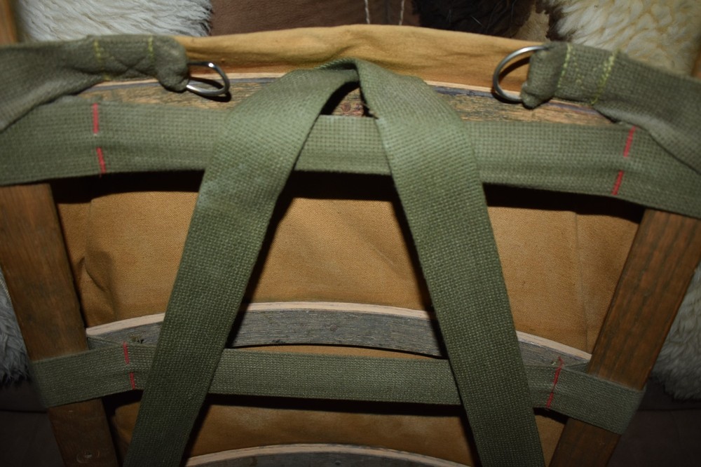 The Vintage Trapper Hiking Wood Frame Packboard Canvas Leather Backpack is a medium-sized, unisex hiking backpack that combines retro charm with practical features. Made from a combination of canvas and leather, this beige backpack includes two pockets for convenient storage and organization. The vintage design adds a touch of nostalgia to outdoor adventures, while the sturdy wood frame ensures durability during rugged hikes. Perfect for those looking for a stylish and functional backpack to accompany them on their next outdoor excursion. Backpack is very nice overall complete and usable overall. Frame is a light wood frame construction and is surprisingly comfortable for age of pack. backpack is midsize but big enough for overnight camping or hunting in my opinion. Backpack is 26'' x 14'' with frame measured. Packed well and shipped fast.