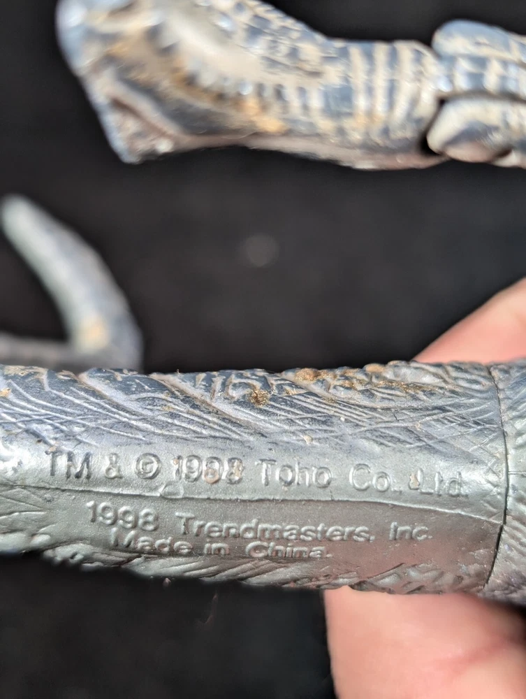 This vintage Trendmasters Godzilla action figure features the iconic movie monster in a fierce fang bite action pose, measuring 10 inches tall. Made of durable plastic material, this figure is a must-have for any Godzilla fan or collector. The gray color and detailed design make it a great addition to any display. With its vintage status and 1998 year of manufacture, this Godzilla figure is a unique piece that captures the essence of the franchise. The figure is part of the Godzilla series and is perfect for fans of the movies and action figures. Add this piece to your collection today and experience the thrill of Godzilla. See photos for detail.