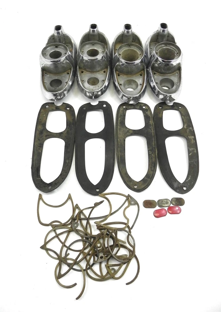 VINTAGE USED 1954 CHRYSLER TAIL LIGHT HOUSING AND PARTS LOT WITH WEAR & PITTING VINTAGE USED 1954 CHRYSLER TAIL LIGHT HOUSING AND PARTS LOT WITH WEAR AND PITTING USED, STORAGE WEAR, USAGE WEAR, SOME RUST, SOME PITTING, SOME SCRATCHES See photos below for details. Contents included will be pictured. ABOUT US Jones Vintage Parts has been a family-owned business for over 40 years. We specialize in rare and vintage NOS and used parts for all makes and models from the teens to the 70s. We're passionate about uncovering and restoring the stories of the treasures from your grandparents and great grandparents history. We believe in breathing new life into the world's first modes of transportation. New vintage all the time! SHIPPING INFORMATION Purchased items will generally ship Monday through Friday, within 3 days via USPS Flat Rate or First Class upon payment receipt. Larger items will be shipped via FedEx Ground or UPS. Multiple same-day purchases will be combined for discounted shipping (request a revised invoice to receive bulk shipping discount or notify us of future purchases). International shipping also available. RETURN POLICY Our goal is your satisfaction. If you are unhappy with your order for any reason items may be returned for parts credit within three (3) days of receipt, and you will be charged a 10% restocking fee. There are no shipping refunds. Exchanges will be billed appropriate freight. All return items must be complete, undamaged, unaltered and in resale condition. You may be interested in our other eBay listings . Powered by SixBit's eCommerce Solution