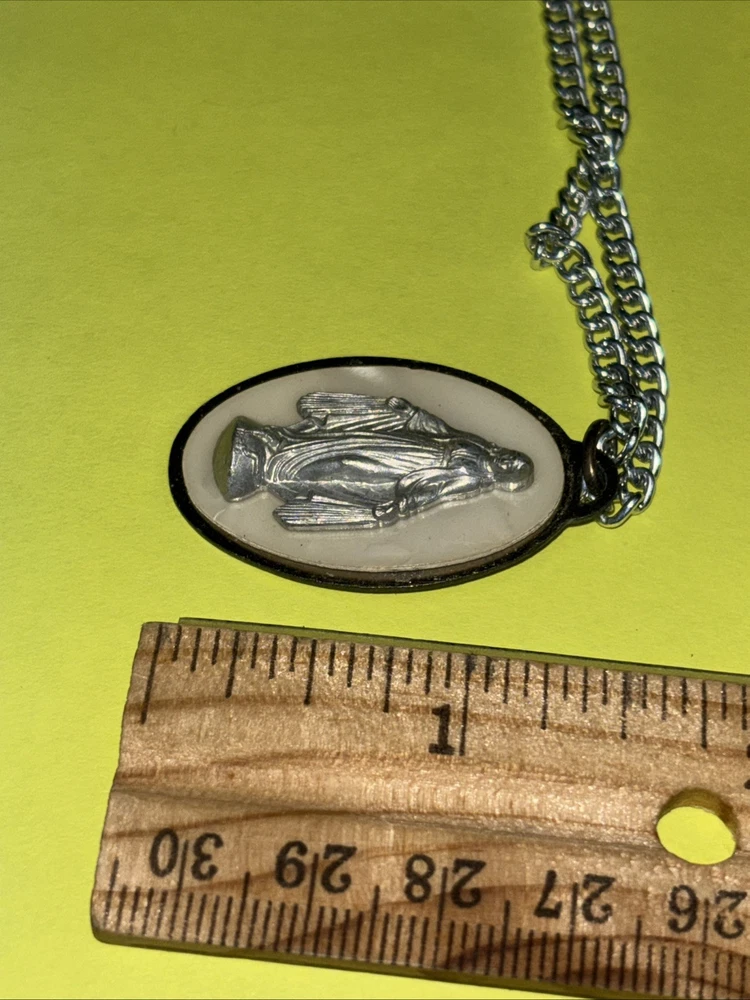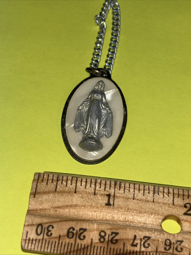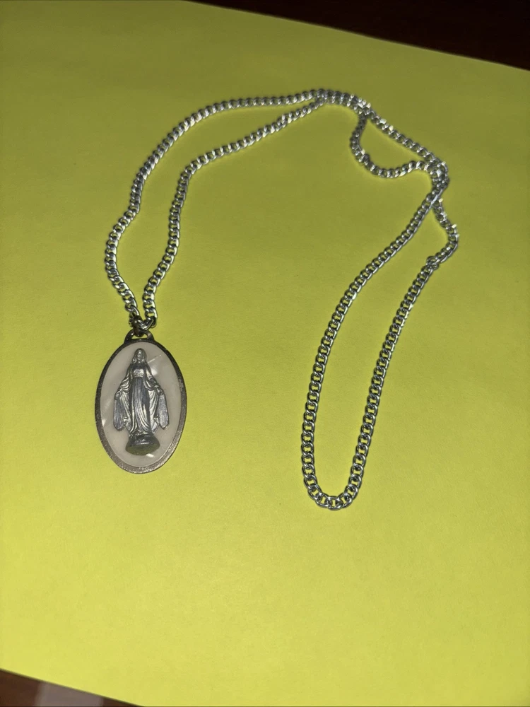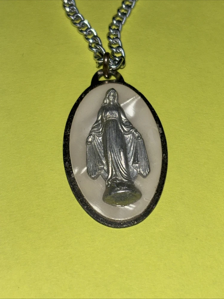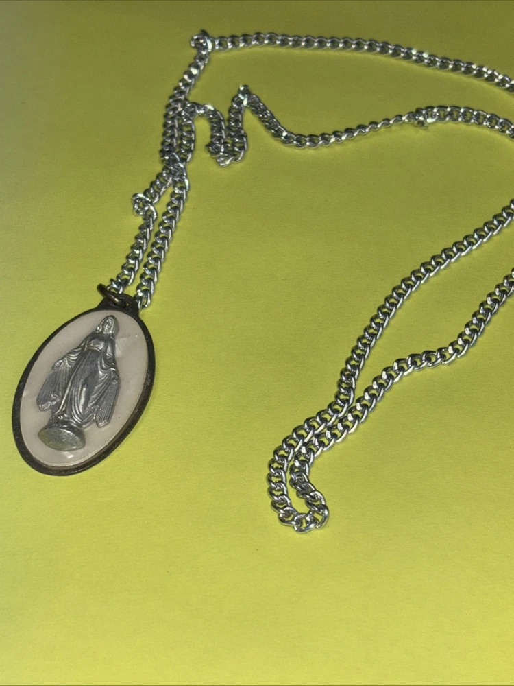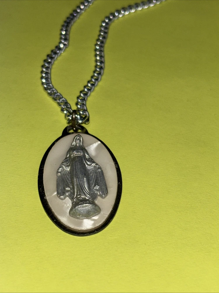 VINTAGE VIRGIN MARY MEDALLION PENDANT NECKLACE
