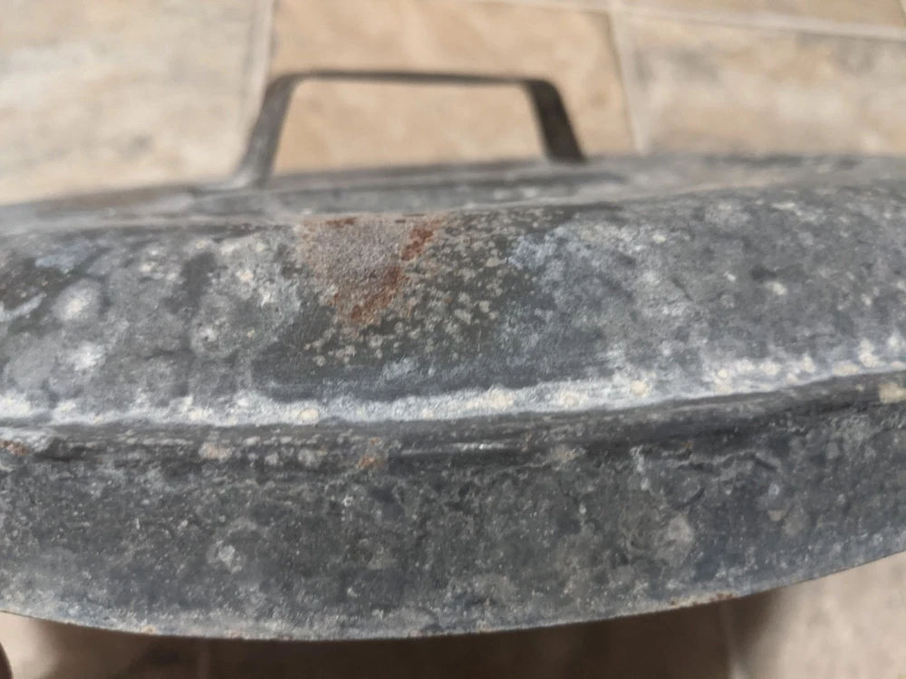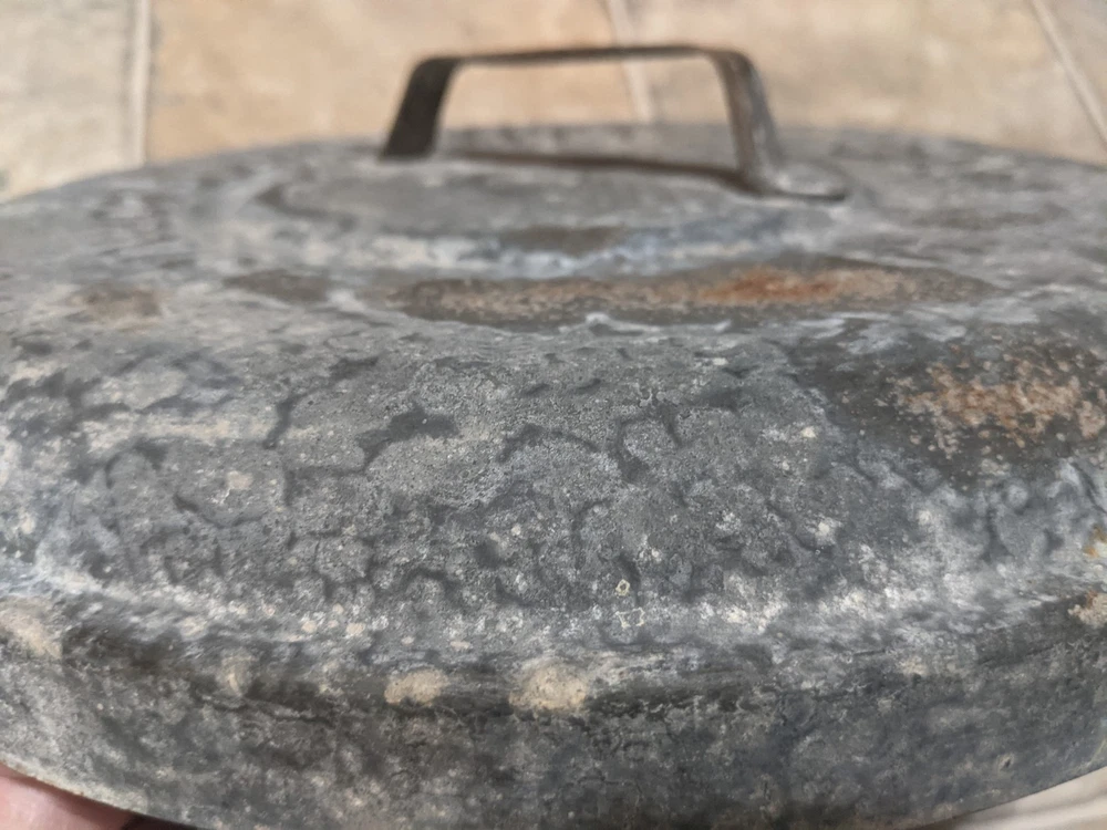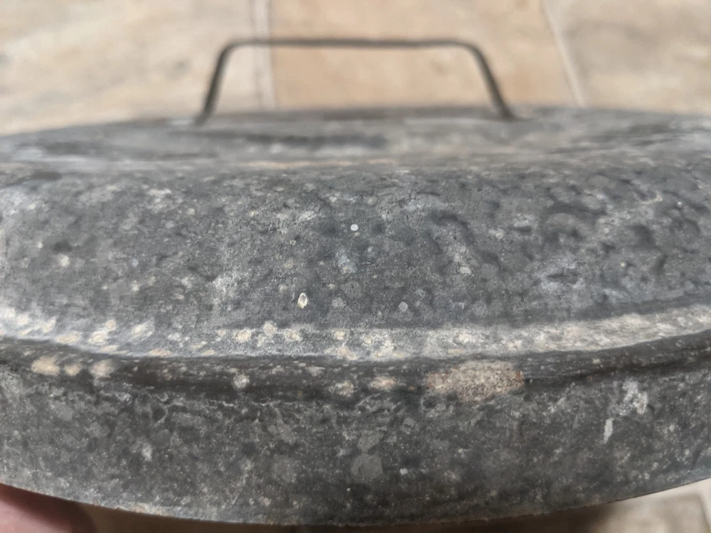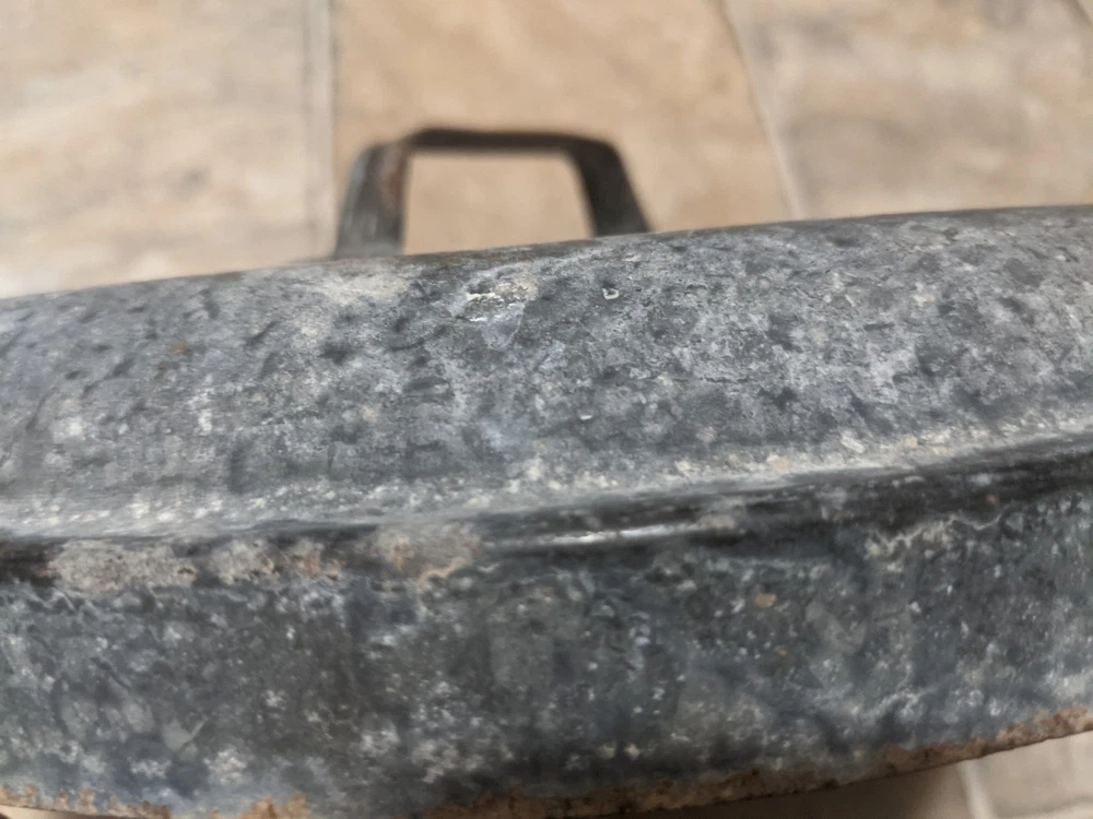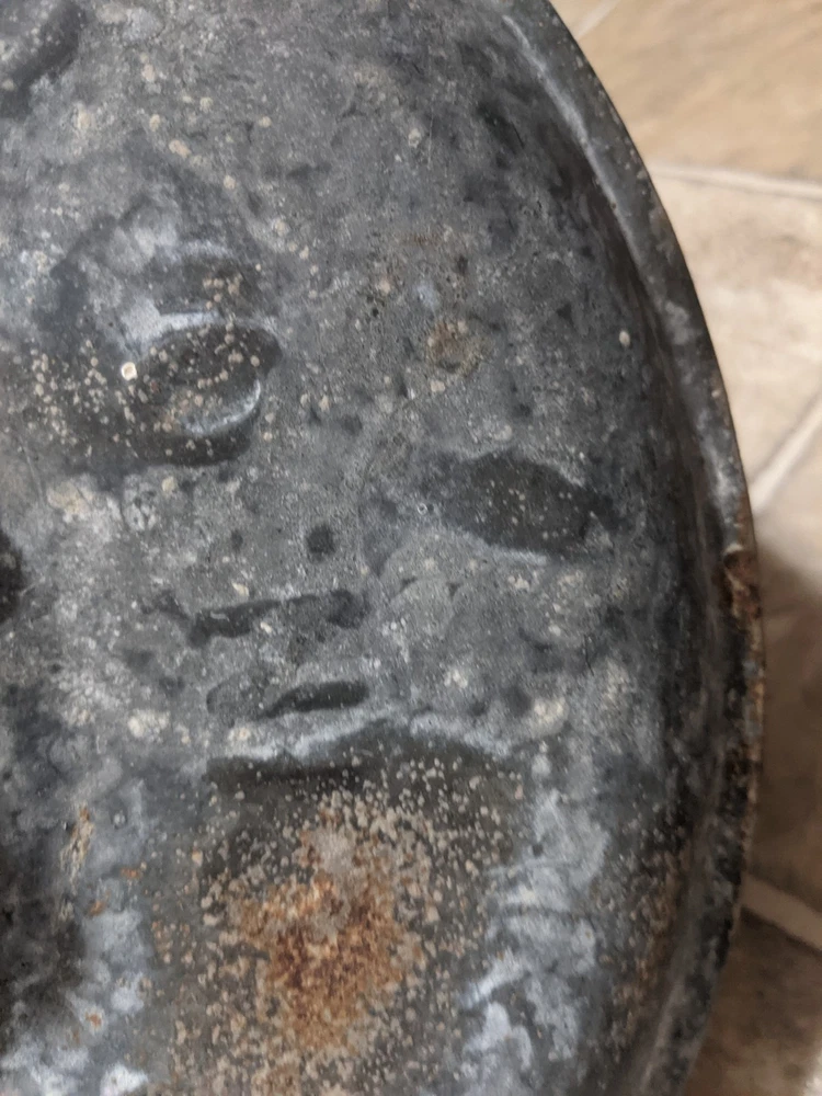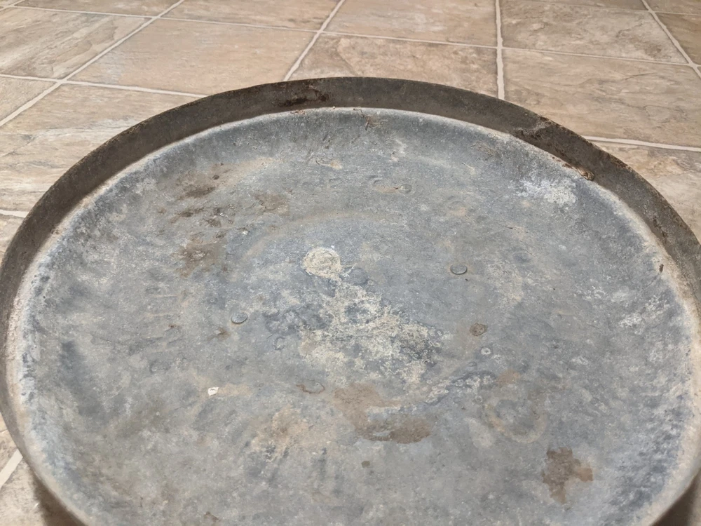 Item is a VINTAGE WITT CAN CO CIN O. GALVANIZED SMALL TRASH CAN LID, LID ONLY, FREE SHIPPING. DIAMETER IS APPROX. 13 in. Center of lid is marked "8". Other markings, "WITT CAN WITT CORNICE CO. CIN. O." Little rust, surface rust mostly, but some small spots on rim exist where rust penetrates from exterior to interior, one spot where rust has created a pin hole seen when held to bright light. See images. Please view all images before purchasing. Do reach out via eBay messaging with any questions or concerns. Note: I have the can that this lid belongs to. The bottom two inches of the can are gone due to rust. If anyone is interested in that can for parts, please message me and I will provide images and/or list it for sale.