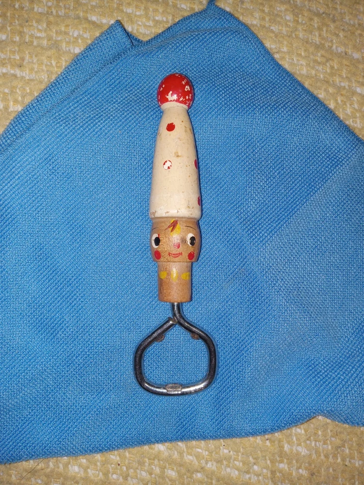 The vintage bottle opener features a wooden figural handle, adding a charming and nostalgic touch to any kitchen or bar decor. The wood figure design not only serves a functional purpose but also doubles as a display piece, bringing a unique and rustic aesthetic to the space. This Breweriana collectible item is a delightful addition for those who appreciate classic barware and retro-inspired pieces.