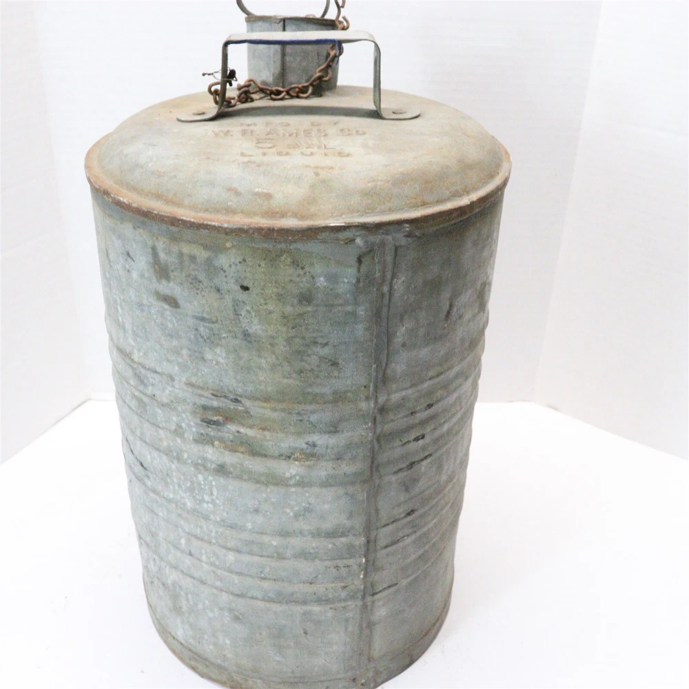 VINTAGE W.R. AMES OIL 5 GALLON GALVANIZED METAL BULK OIL CAN WITH LID RARE USED VINTAGE W.R. AMES OIL 5 GALLON GALVANIZED METAL BULK OIL CAN WITH LID RARE USED See photos below for details. Contents included will be pictured. ABOUT US Jones Vintage Parts has been a family-owned business for over 40 years. We specialize in rare and vintage NOS and used parts for all makes and models from the teens to the 70s. We're passionate about uncovering and restoring the stories of the treasures from your grandparents and great grandparents history. We believe in breathing new life into the world's first modes of transportation. New vintage all the time! SHIPPING INFORMATION Purchased items will generally ship Monday through Friday, within 3 days via USPS Flat Rate or First Class upon payment receipt. Larger items will be shipped via FedEx Ground or UPS. Multiple same-day purchases will be combined for discounted shipping (request a revised invoice to receive bulk shipping discount or notify us of future purchases). International shipping also available. RETURN POLICY Our goal is your satisfaction. If you are unhappy with your order for any reason items may be returned for parts credit within three (3) days of receipt, and you will be charged a 10% restocking fee. There are no shipping refunds. Exchanges will be billed appropriate freight. All return items must be complete, undamaged, unaltered and in resale condition. You may be interested in our other eBay listings . Powered by SixBit's eCommerce Solution