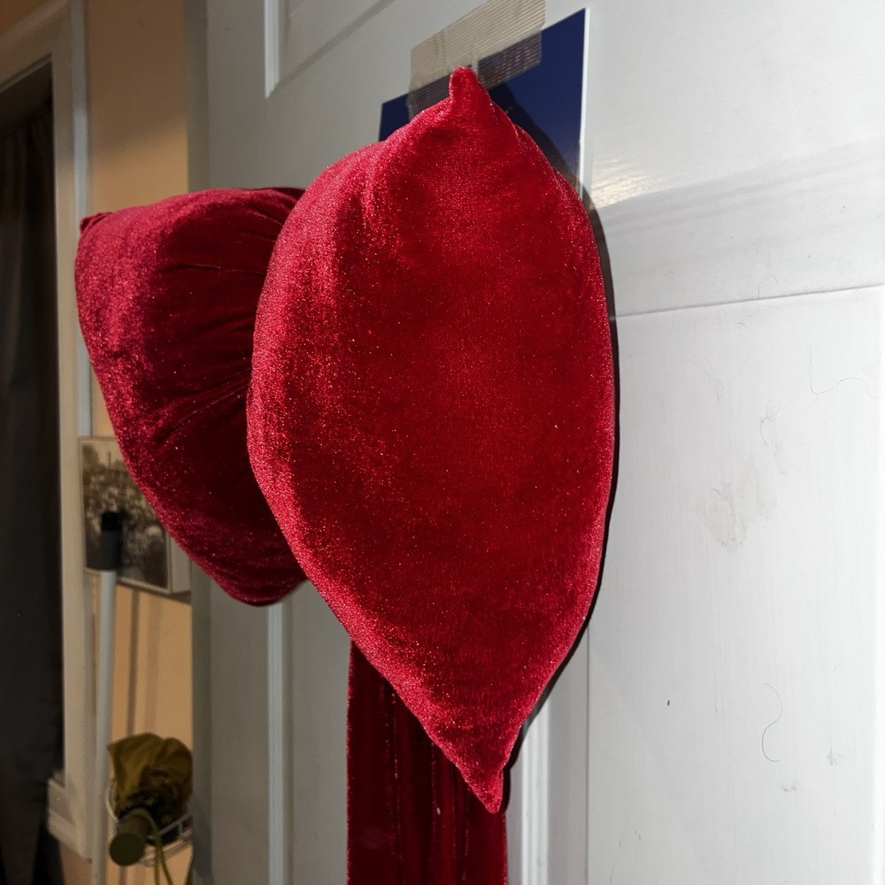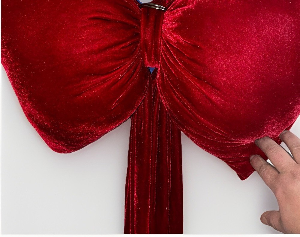 This giant red velvet bow was viral on TikTok as a show-stopping Christmas tree topper and statement holiday decor piece. Featuring a luxurious, velvet fabric and a dramatic, puffy bow design, this piece instantly elevates trees, wreaths, mantels, staircases, door decor, or oversized gift wrapping. Measurements: Length is Width of bow is • Built-in hook at the top for easy hanging, but lays flat and hidden from the eye if used on top of your tree • Perfect as a tree topper, wreath accent, or luxury gift decor This is the kind of decor piece that turns a regular tree or wreath into a Pinterest / TikTok-worthy centerpiece. Hard to find once the season sells out. Will ship next day!
