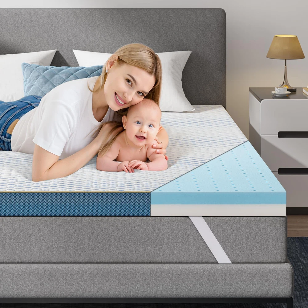 4 Inch Memory Foam Mattress Topper KING: 76 x 80 inch, Firm mattress topper king for back pain & Best support, New Release! Dual-Layer Design & Optional Firmness: Are you looking for an ideal firmness mattress topper? Our topper is made of premium memory foam and high-density support foam. One side of the memory foam is soft and slow to rebound. The other side of the support foam is firm, providing support. If you want to adjust the firmness, you can simply flip the topper upside down, which is very convenient Adequate Support & Pressure relief: Experience unparalleled comfort and support with our mattress topper's unique design. Engineered with 7-zone technology, it provides targeted support and pressure relief to various areas of your body, including the head, shoulders, hips, and legs. Whether you're a side, stomach, or back sleeper, our topper's advanced technology ensures optimal spinal alignment and alleviates pressure points, promoting better sleep quality and overall well-being Skin-friendly & Removable & Washable Cover: Indulge in luxurious comfort with our skin-friendly mattress topper cover. Crafted from premium materials and certified by OEKO-TEX, it offers a soft touch that feels like sleeping on a cloud. The removable design, coupled with four elastic straps, ensures a snug fit to your mattress while facilitating easy cleaning. Rest assured, our cover is designed to withstand frequent washing, maintaining its shape and integrity over time, providing durability and longevity for years to come Breathable & Cooling Memory Foam: Stay cool and comfortable throughout the night with our mattress topper's innovative cooling technology. Infused with cooling gel, the premium memory foam features a perforated design that enhances airflow, promoting breathability and heat dissipation. Say goodbye to sweaty nights and hello to uninterrupted sleep, as our topper keeps you cool and cozy, ensuring a rejuvenating sleep experience every night Rest Assured & Customer Service: With over 40 years of expertise in bedding manufacturing, we stand behind the quality of our products. Committed to excellence, we adhere to strict quality control measures to ensure each mattress topper meets our high standards of craftsmanship. Furthermore, our dedicated customer service team is here to assist you every step of the way, providing prompt and reliable support to ensure your utmost satisfaction. Rest assured, your comfort and satisfaction are our top priorities