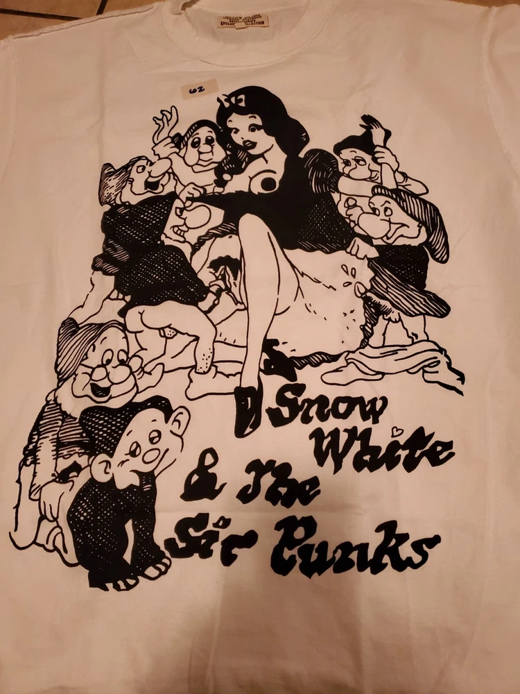 VIVIENNE WESTWOOD X MALCOM MCLAREN X SEDITIONARIES “SNOW WHITE & THE SIR PUNKS” T-Shirt SZ X-LARGE NEW WITH OUT TAGS SEX PISTOLS ---MODERN--- Show off your love for punk rock with this Vivienne Westwood Malcolm McLaren Seditionaries Snow White The Sir Punks T-Shirt. Made of breathable cotton material, this white crew neck T-shirt features a graphic print of Snow White and the seven dwarfs with a punk twist. The short sleeve T-shirt is perfect for any season, whether it's winter, summer, fall, or spring. This XL T-shirt fits regular and is perfect for men who want to add a touch of punk rock to their wardrobe. The T-shirt is made in unknown country/region of manufacture and is not considered vintage. Don't miss out on the opportunity to own this unique and trendy piece.