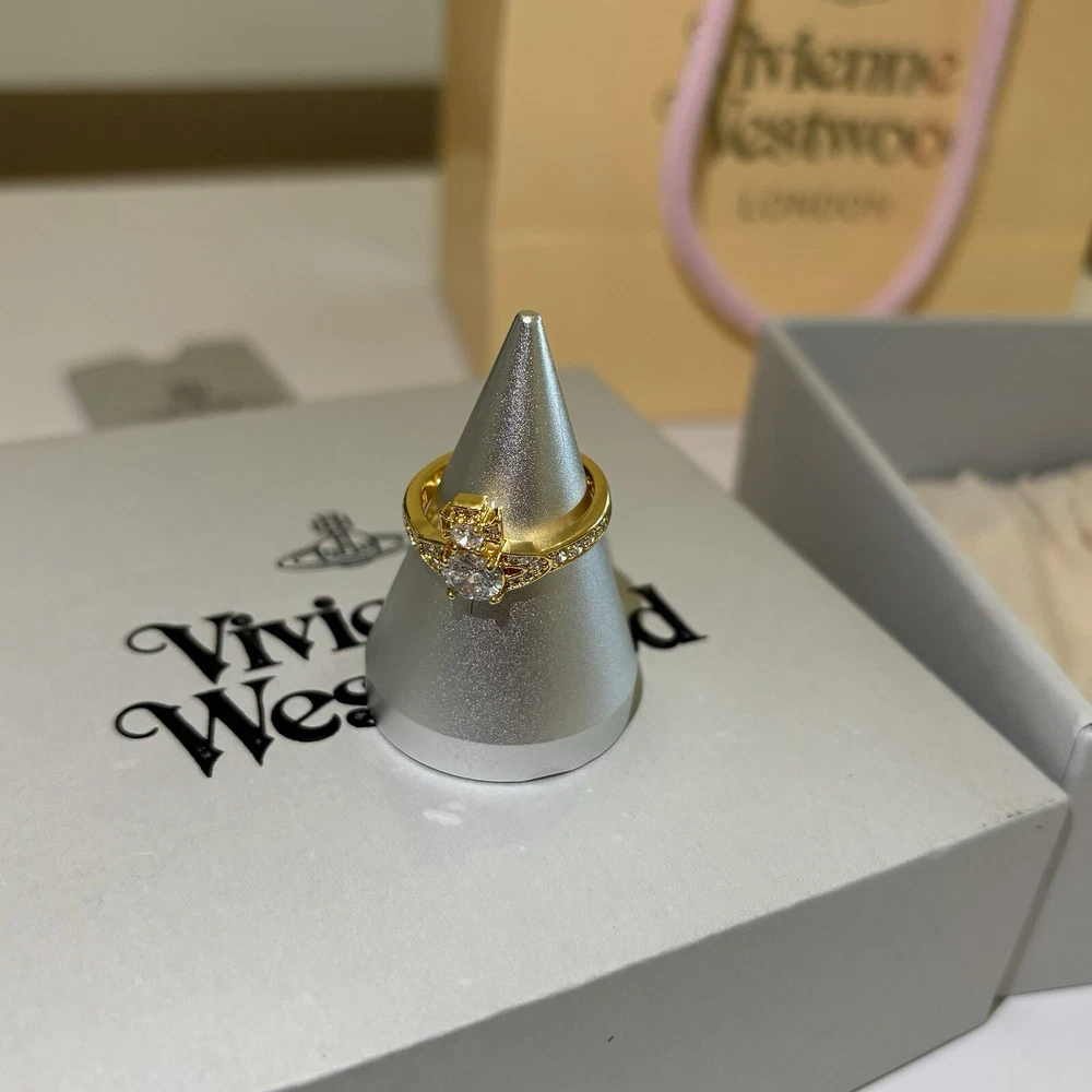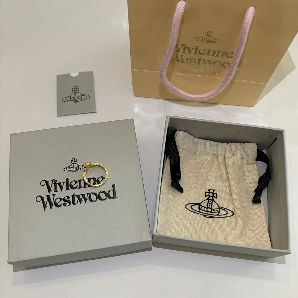VIVIENNE WESTWOOD Square Princess Cut Crystal Ring size 7 Gift Box 203