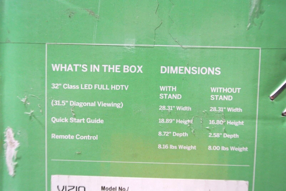 Item available today is the, VIZIO D32FM-K07 32" D-Series FHD Smart TV . This is a used tv . Tv is in great condition. Ready for use. Please see photos for more details. Items in photos are what come with the listing. Thank you for shopping small business. Terms of Sale Listing is for item and/or accessories shown in photos only. Some states may require a tax be charged at the time of checkout, this is eBay automated. We ship and answer questions Mon-Fri 8am-4pm EST . We stand behind our products and would be happy to assist you if you experience an issue. Please contact us first. We ship to your confirmed PayPal address only using UPS or USPS. Items over $200 may require signature upon delivery. There are no returns on items sold for parts. A RESTOCK FEE UP TO 20% MAY BE CHARGED FOR RETURNS THAT ARE NOT OF FAULT OF THE SELLER OR ITEMS NOT RETURNED IN THE SAME CONDITION. Thank you for shopping small business! Shipping Information Only ships within the Continental United States with one business day processing time. LM 11 /15/2024 ( E3 )