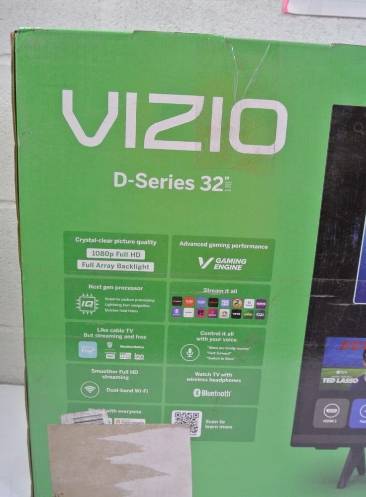 Item available today is the, VIZIO D32f-J04 32 inch 1080p LED Smart TV . NO STAND NO REMOTE. This is a used tv . TV DOES NOT COME WITH A STAND OR A REMOTE . TV is in great condition. Ready for use. Please see photos for more details. Items in photos are what come with the listing. Thank you for shopping small business. Terms of Sale Listing is for item and/or accessories shown in photos only. Some states may require a tax be charged at the time of checkout, this is eBay automated. We ship and answer questions Mon-Fri 8am-4pm EST . We stand behind our products and would be happy to assist you if you experience an issue. Please contact us first. We ship to your confirmed PayPal address only using UPS or USPS. Items over $200 may require signature upon delivery. There are no returns on items sold for parts. A RESTOCK FEE UP TO 20% MAY BE CHARGED FOR RETURNS THAT ARE NOT OF FAULT OF THE SELLER OR ITEMS NOT RETURNED IN THE SAME CONDITION. Thank you for shopping small business! Shipping Information Only ships within the Continental United States with one business day processing time. LM 09 /24/2024 ( D3 )