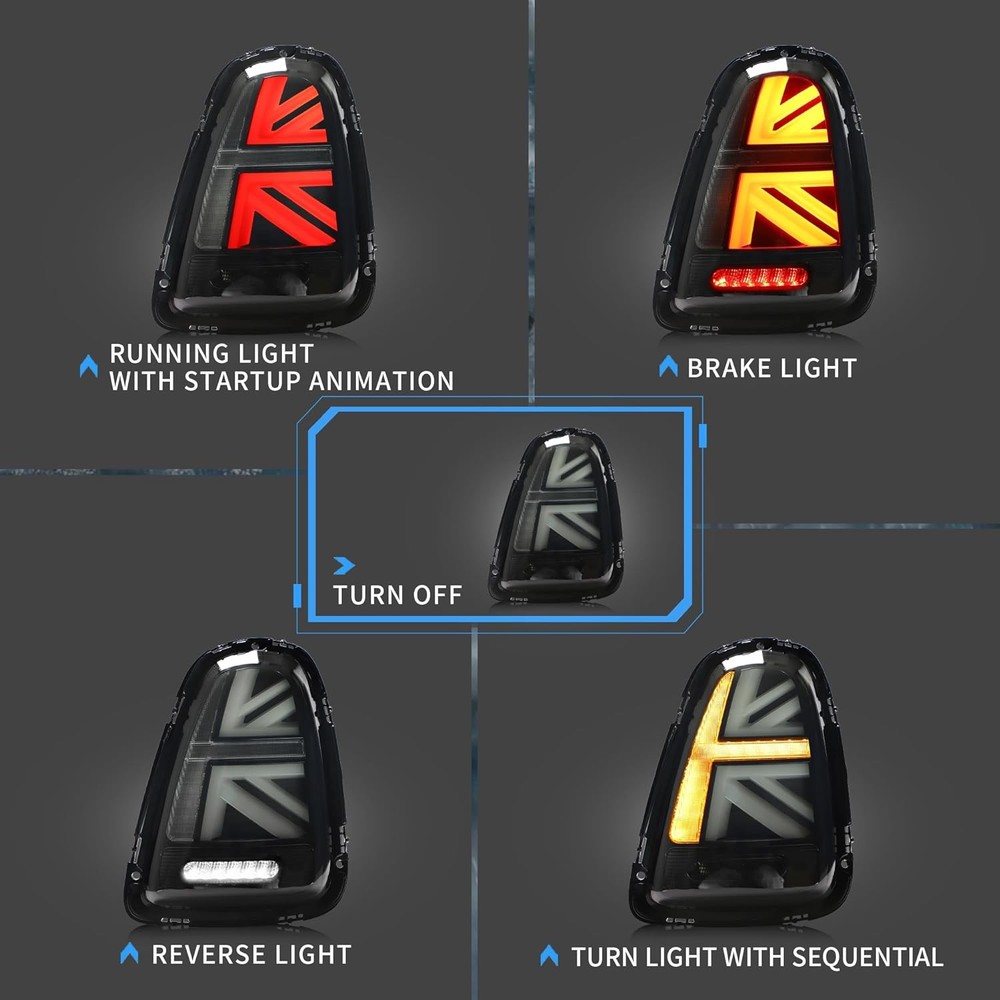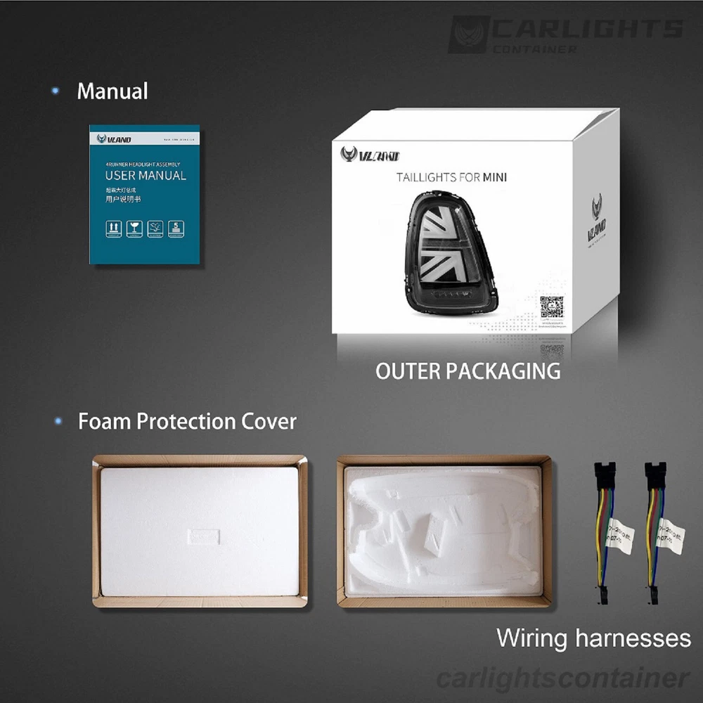 VLAND LED SMOKE Tail lights For Mini Cooper R56 R57 R58 R59 2007-2013 Union Jack NOTE: 【PRE-OWNED】Basically new, slight scratches or slight installation marks on the appearance.The outer packaging is old. Fitment: Mini Cooper R56 R57 R58 R59 2007 2008 2009 2010 2011 2012 2013 Mini Hatch(R56) 2007-2013 Mini Cabrio(R57) 2009-2015 Mini Coupé(R58) 2011-2015 Mini Roadster(R59) 2012-2015 Certification: DOT/SAE/E-Mark. Item Features: Lens Color:SMOKED Running Light: LED (Red) Brake Light: LED (Red) Fog Light :LED (Red) Reverse Light: LED (Diamond White) Turn Signals: LED(Amber With. Sequential Indicators) Full LED tail lights, no need bulbs. No need to change the wiring harness, the original car OEM directly replaces it. Plug and play.(Professional installation recommended). Package includes: 1 pair of headlights with left side & right side. This item has the same connections and wires with the original tail lights. It is easy to installing (Professional installation recommended). Warranty: One Year You May Also Like: 👇 SPECIFIC ABOUT PAYMENT RETURN SPECIFIC ABOUT PAYMENT RETURN VLAND LED SMOKE Tail lights For Mini Cooper R56 R57 R58 R59 2007-2013 Union Jack NOTE: 【PRE-OWNED】Basically new, slight scratches or slight installation marks on the appearance.The outer packaging is old. Fitment: Mini Cooper R56 R57 R58 R59 2007 2008 2009 2010 2011 2012 2013 Mini Hatch(R56) 2007-2013 Mini Cabrio(R57) 2009-2015 Mini Coupé(R58) 2011-2015 Mini Roadster(R59) 2012-2015 Certification: DOT/SAE/E-Mark. Item Features: Lens Color:SMOKED Running Light: LED (Red) Brake Light: LED (Red) Fog Light :LED (Red) Reverse Light: LED (Diamond White) Turn Signals: LED(Amber With. Sequential Indicators) Full LED tail lights, no need bulbs. No need to change the wiring harness, the original car OEM directly replaces it. Plug and play.(Professional installation recommended). Package includes: 1 pair of headlights with left side & right side. This item has the same connections and wires with the original tail lights. It is easy to installing (Professional installation recommended). Warranty: One Year You May Also Like: 👇 SPECIFIC ABOUT PAYMENT RETURN SPECIFIC ABOUT PAYMENT RETURN On Jan 9, 2026 at 21:00:00 PST, seller added the following information: