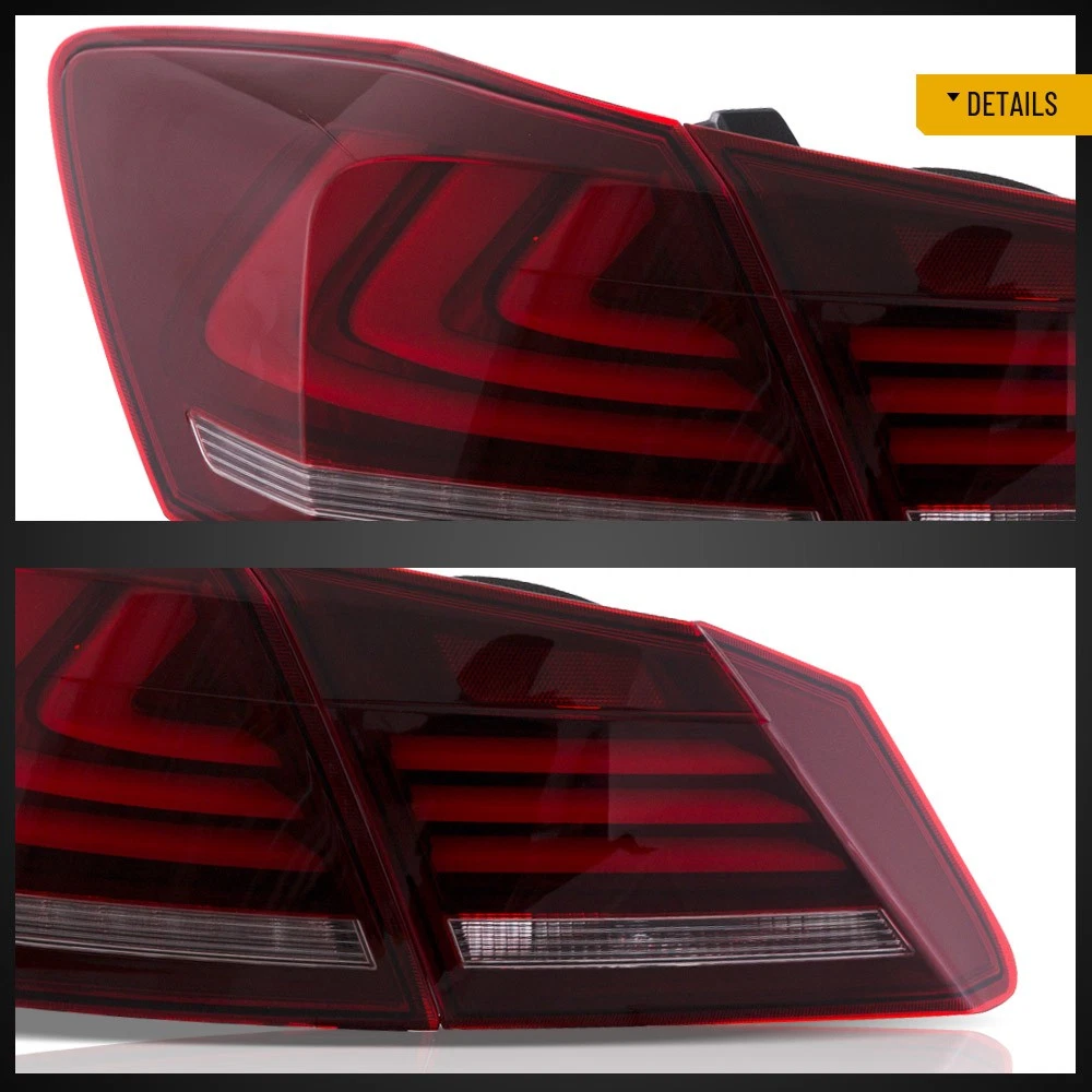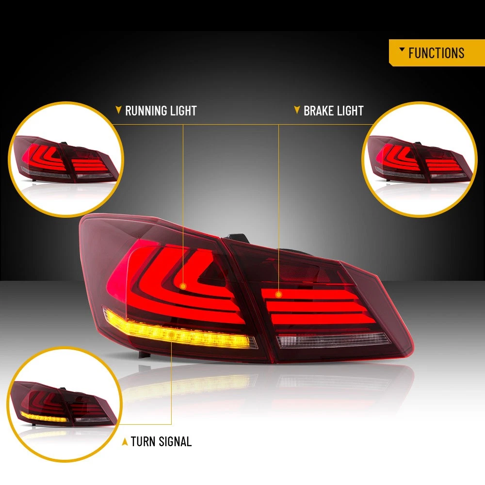 VLAND Red Clear LED Tail Lights Assembly For 2013-2017 Honda Accord 4-Door Sedan Part #: 33500-T2A-A11, 33550-T2A-A11, 33550-T2A-A12, 34150-T2A-A11, 34155-T2A-A11 INCLUDES: (1) Front Taillight Assembly Right Passenger Side (1) Front Taillight Assembly Left Driver Side Fitment: Honda accord 4-Door Sedan 2013-2017 Contact Us SHIPPING & RETURN WARRANTY Contact Us 100% satisfaction goal. If you have had less than 100% positive experience, please contact us, so we can work out a resolution. Your questions will be replied within 24 hours except the weekend and holiday. We will serve for you with all sincerity! SHIPPING & RETURN Shipping Information - Policy The goods will shipped by the eBay address, so please leave the right address on eBay Please, choose some local sellers, If you cannot wait patiently in the shipping time we declared. Once you purchase, please DON’T leave negative or neutral feedback if you haven't received item in 30 days, because we have mentioned the shipping time repeatedly. If you not satisfied with the goods please contact us before leave the feedback, we will try ourbest to satisfy you. Standard Order Processing time: W e'll update you when proceeding with your order from (Monday - Friday). Payment cleared/received on Friday will be shipped on the next business days (Monday or Tuesday). We are not responsible for carrier transit time. This information is provided by the carrier and excludes weekends and holidays. Note that transit times may vary, particularly during peak periods or in climate weather conditions, and that delivery times frames will need to be extended for any processing time frames in excess of 2-3 business days. WARRANTY Standard Replacement Specifically excluded from this warranty are failures caused by misuse, negligence, modification, abuse, improper application, installation or operation, or by unauthorized service or use of unauthorized parts in connection with the product and inadequate maintenance, normal wear and tear or normal consumption of the product. One time replacement Customers are responsible for the return shipping cost on warranty claims. We will refund you the money you paid for the parts less shipping and handling charges Please Note: - We also have more models available, please contact us if you can't find your specific model. - When products are noted in the description as out of stock, these products will then be offered as pre-sale items, normally they will be posted within 20 days from the date of cleared payment. - Item sold in a pair (left and right), bulbs may or may not be provided. On Dec 18, 2025 at 00:48:00 PST, seller added the following information: