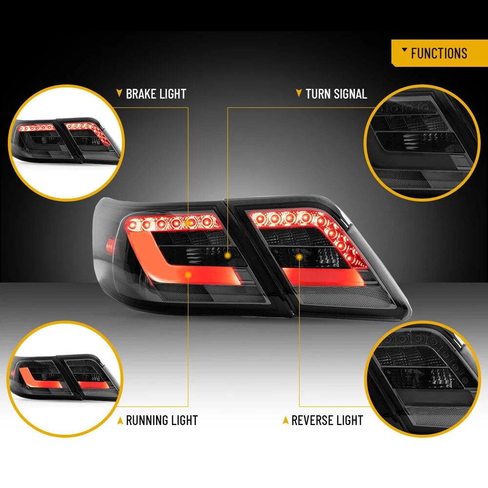 VLAND Smoked FULL LED Tail Lights For Toyota Camry Rear 07-09 LE&SE 07-11 CE&XLE Part #: 8155006240 8158006120 8156006240 8159006120 INCLUDES: (1) Front Taillight Assembly Right Passenger Side (1) Front Taillight Assembly Left Driver Side Fitment: Toyota Camry Sedan 2007-2009 (CE, SE, XLE) Toyota Camry Sedan 2010-2011 (CE, XLE) NOT Fit 2007-2011 Camry Hybrid and LE, 2010-2011 Camry SE Contact Us SHIPPING & RETURN WARRANTY Contact Us 100% satisfaction goal. If you have had less than 100% positive experience, please contact us, so we can work out a resolution. Your questions will be replied within 24 hours except the weekend and holiday. We will serve for you with all sincerity! SHIPPING & RETURN Shipping Information - Policy The goods will shipped by the eBay address, so please leave the right address on eBay Please, choose some local sellers, If you cannot wait patiently in the shipping time we declared. Once you purchase, please DON’T leave negative or neutral feedback if you haven't received item in 30 days, because we have mentioned the shipping time repeatedly. If you not satisfied with the goods please contact us before leave the feedback, we will try ourbest to satisfy you. Standard Order Processing time: W e'll update you when proceeding with your order from (Monday - Friday). Payment cleared/received on Friday will be shipped on the next business days (Monday or Tuesday). We are not responsible for carrier transit time. This information is provided by the carrier and excludes weekends and holidays. Note that transit times may vary, particularly during peak periods or in climate weather conditions, and that delivery times frames will need to be extended for any processing time frames in excess of 2-3 business days. WARRANTY Standard Replacement Specifically excluded from this warranty are failures caused by misuse, negligence, modification, abuse, improper application, installation or operation, or by unauthorized service or use of unauthorized parts in connection with the product and inadequate maintenance, normal wear and tear or normal consumption of the product. One time replacement Customers are responsible for the return shipping cost on warranty claims. We will refund you the money you paid for the parts less shipping and handling charges Please Note: - We also have more models available, please contact us if you can't find your specific model. - When products are noted in the description as out of stock, these products will then be offered as pre-sale items, normally they will be posted within 20 days from the date of cleared payment. - Item sold in a pair (left and right), bulbs may or may not be provided. On Dec 27, 2024 at 23:39:07 PST, seller added the following information: