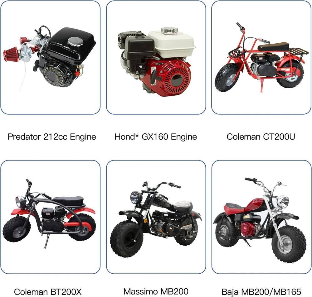 Compatible Model: For Predator 212cc, For Coleman CT200U, For Coleman CT200U-EX, For Hond* GX160, For Hond* GX200, For Baja Warrior MB200, For Mega Moto Mega Max, For Baja Trailmaster, For Harbor Freight Predator 68121, For Harbor Freight Predator 69727, For RATO R210-III Brand: Unbranded gtin13: Does not apply Power Source: Gas Color: a-red Exterior Finish: Chrome Horsepower: 6.5 HP Number in Pack: 1 Compatible Brand: Carburetor Kit for Predator 212cc Engine Type: Carburetor Material: Aluminum, Chrome Vehicle Service Type: Bike Recommended Uses For Product: Go Kart UPC: Does not apply Compatible With Vehicle Type: Bike