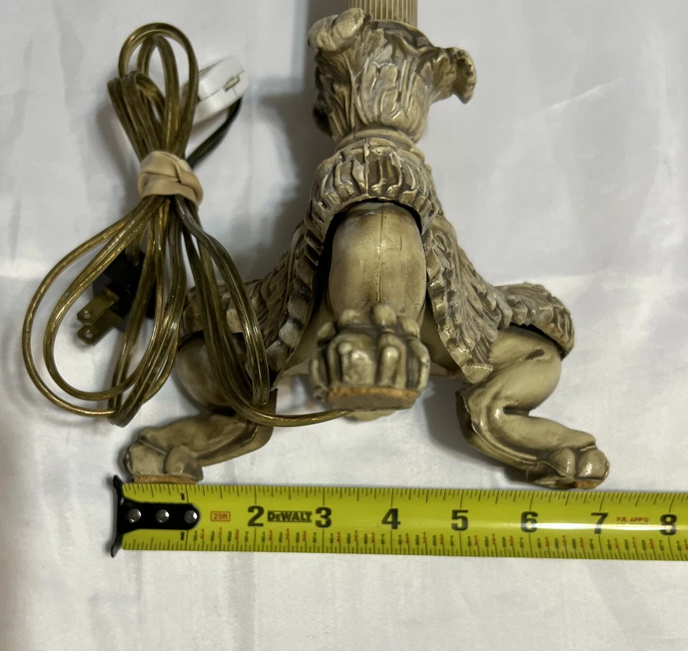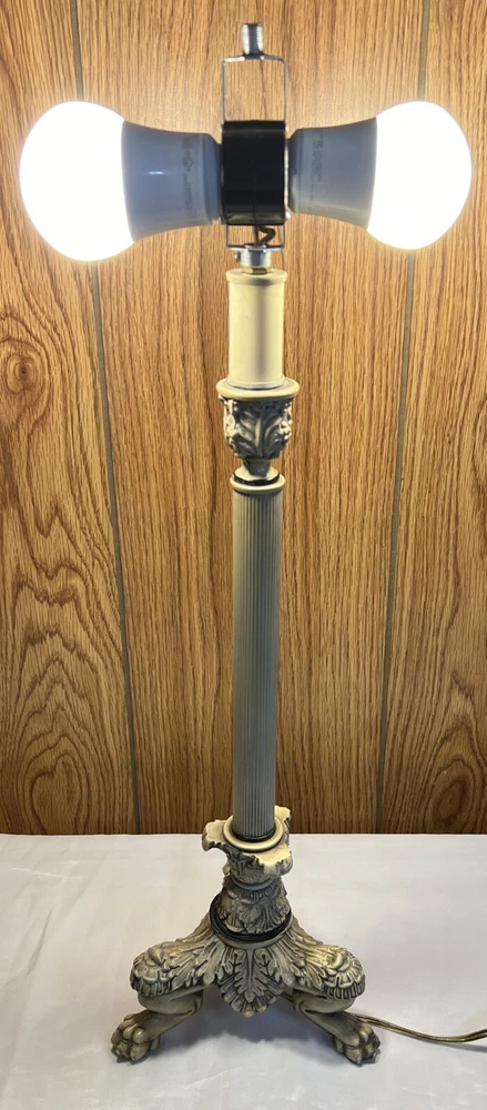 ** BEAUTIFUL VINTAGE CHAPMAN FRENCH EMPIRE ANIMAL CLAW / FILAGREE 23” INCH TABLE LAMP** & WEIGHS JUST OVER 4lbs ** CLAWS MEASURE 7” APART FROM EACH OTHER ** DUEL BULB LIGHTING ** MADE & PAINTED TO LOOK LIKE A COLUMN / OR STATUE ** BASE IS METAL UNKNOWN IF CAST STEEL OR PAINTED BRASS OR BRONZE ** COMES FROM NON SMOKING HOME ** HAD ONE OWNER BEFORE ME ** GREAT PIECE FOR ANY KIND OF ROOM ** SHADE NOT INCLUDED IT IS FOR MODELING LAMP USE FOR MY STORE ONLY .. SORRY ** WILL BE PACKAGED & SHIPPED WITH EXTRA CARE ** SHIPS WITHIN 48 BUSINESS HOURS OF PURCHASE