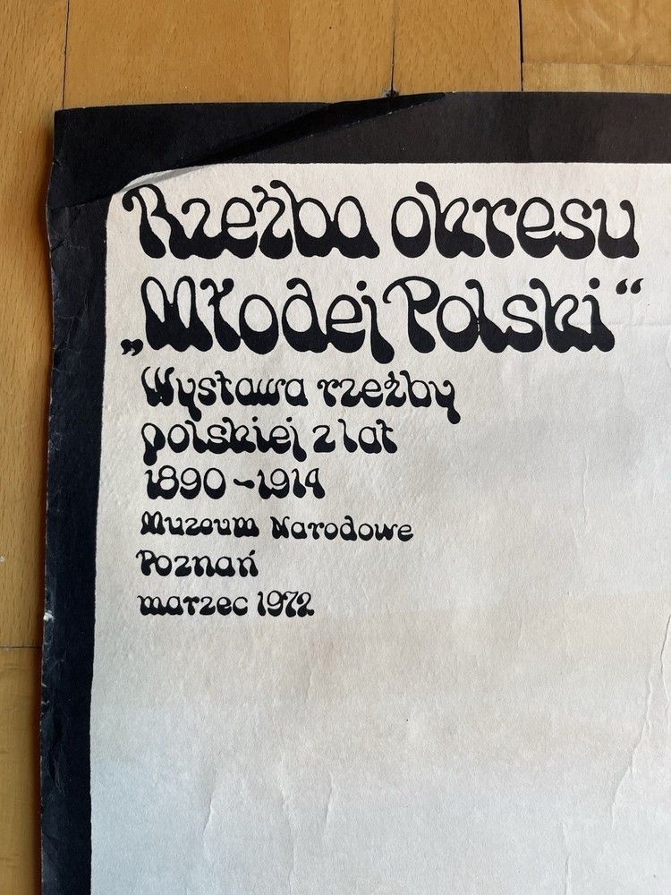 POSTER OF EXHIBITION OF POLISH SCULPTURE FROM THE YOUNG POLAND (MŁODEJ POLSKI) PERIOD FROM 1890-1914, AT THE MUZEUM NARODOWE W POZNANIU (NATIONAL MUSEUM IN POZNAŃ), MARCH 1972. GRAPHIC DESIGN: RAFAŁ JASIONOWICZ PRINT: WYDAWNICTWO ARTYSTYCZNO - GRAFICZNE RSW PRASA. SIZE: 57 X 81,5 CM ORIGINAL, NOT A REPRODUCTION