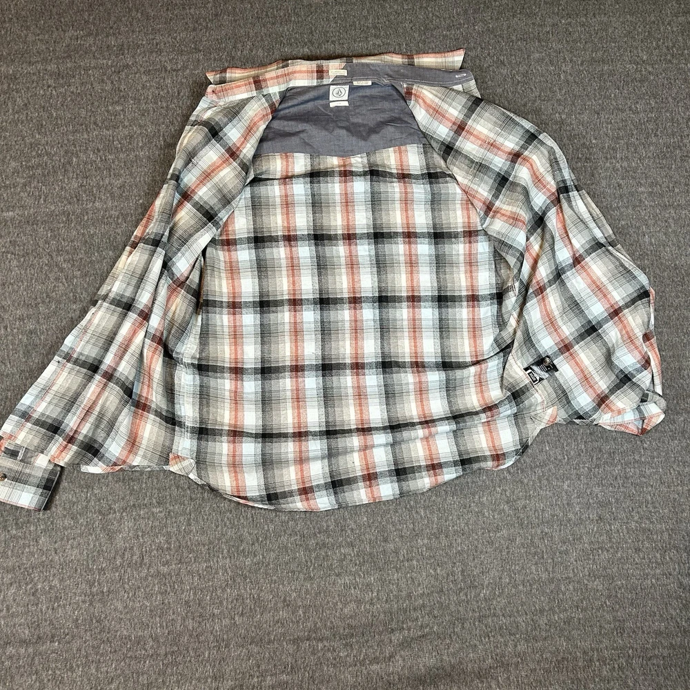 Volcom Button Down Shirt is in very good condition, with minimal wear from age and use. Please see Photos for Condition of Shirt. Elevate your wardrobe with this stylish Volcom button-down shirt, perfect for any occasion from casual wear to workwear. The plaid pattern, collared neckline, and button-down collar style give it a classic look, while the long sleeves and regular fit make it comfortable to wear in any season. The shirt features easy care fabric and pockets for added convenience. It comes in a multicolor design, making it a great addition to your travel or everyday outfits. This shirt is available in size large and is suitable for men.