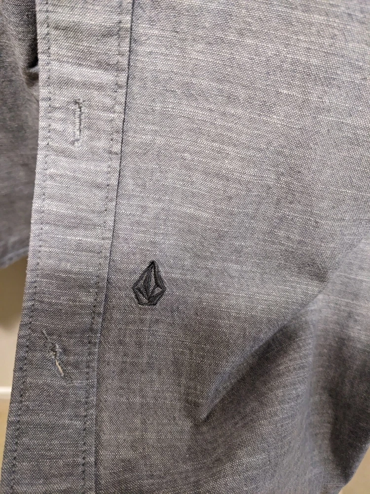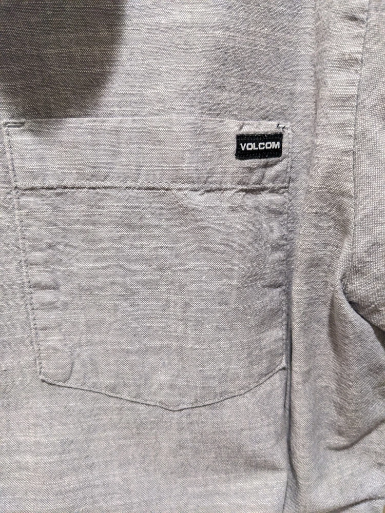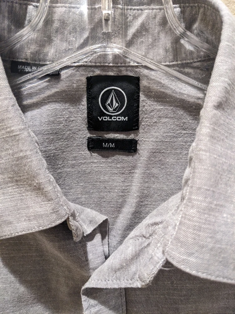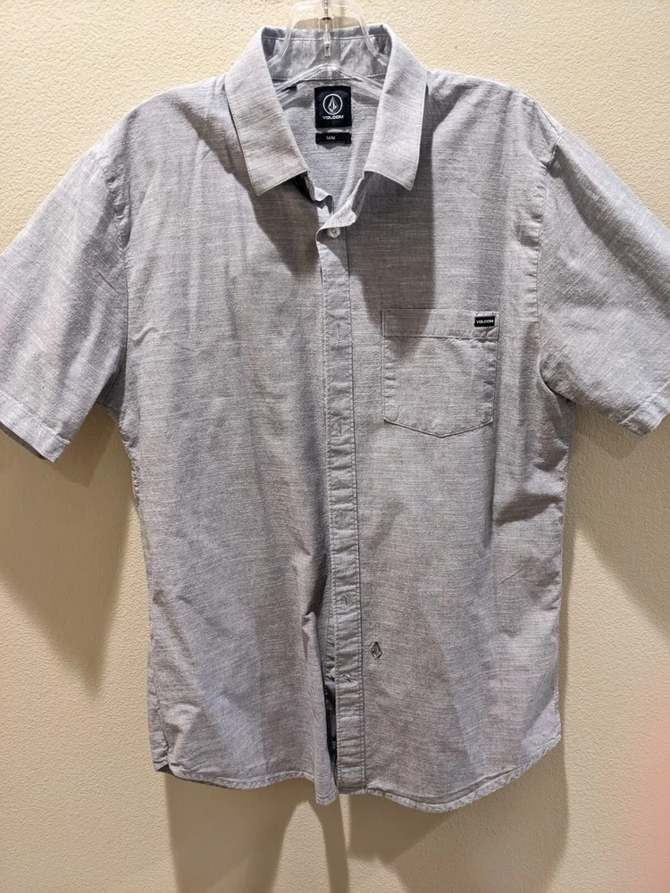 VOLCOM Button Up Shirt Men's Medium Gray Short Sleeve One Pocket