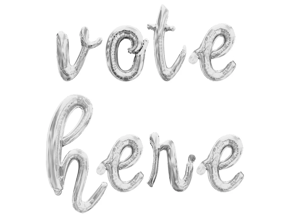 FAST SHIPPING!!! SHIPS NEXT BUSINESS DAY FROM NORTH CAROLINA!!! Get your cursive VOTE HERE Balloon Banner! Balloons vary in size depending on letter but average approximately 16 inches tall when inflated. Set includes the following: 1x - 16 inch cursive VOTE HERE letter balloons 1x - 10M string for hanging the balloons 1x - Straw for inflating the balloons 1x - Detailed instructions for inflating with air Please note that the 16 inch letter balloons CANNOT BE INFLATED WITH HELIUM. You must use AIR ONLY. The are meant to be taped to a wall or hang using the string provided. They are not meant to float with helium. ***For best results inflate the day of event. Balloons will ship deflated and can be inflated with air only using the straw provided.*** CHOKING HAZARD ? Children under 8 yrs. can choke or suffocate on uninflated or broken balloons. Adult supervision required. Keep uninflated balloons from children. Discard broken balloons at once.