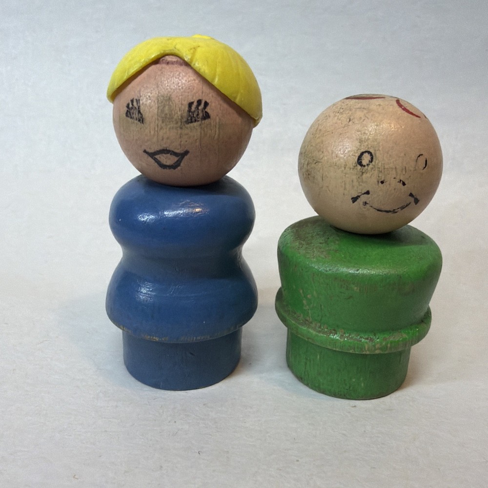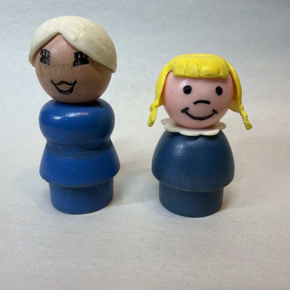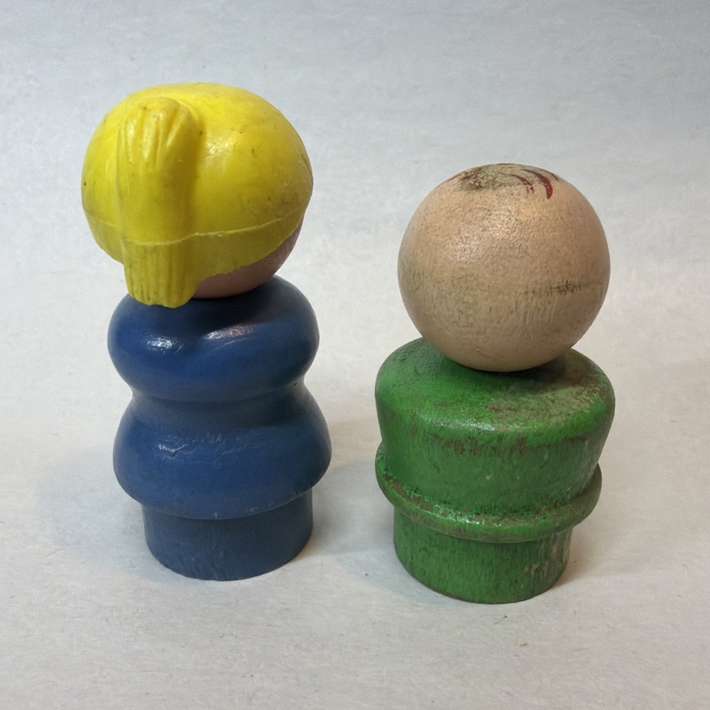 Lot of seven used Fisher-price figures. Made of wood and plastic. Sold as is and as photographed.