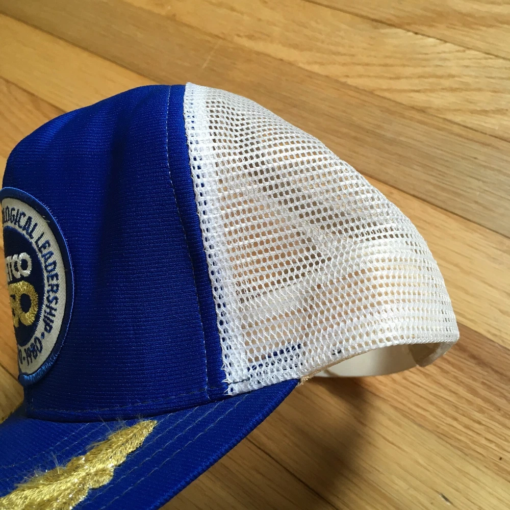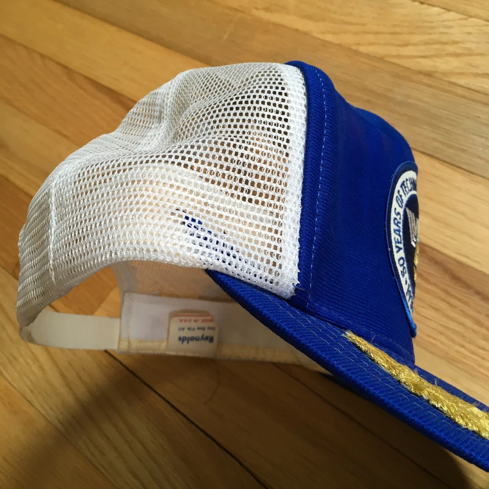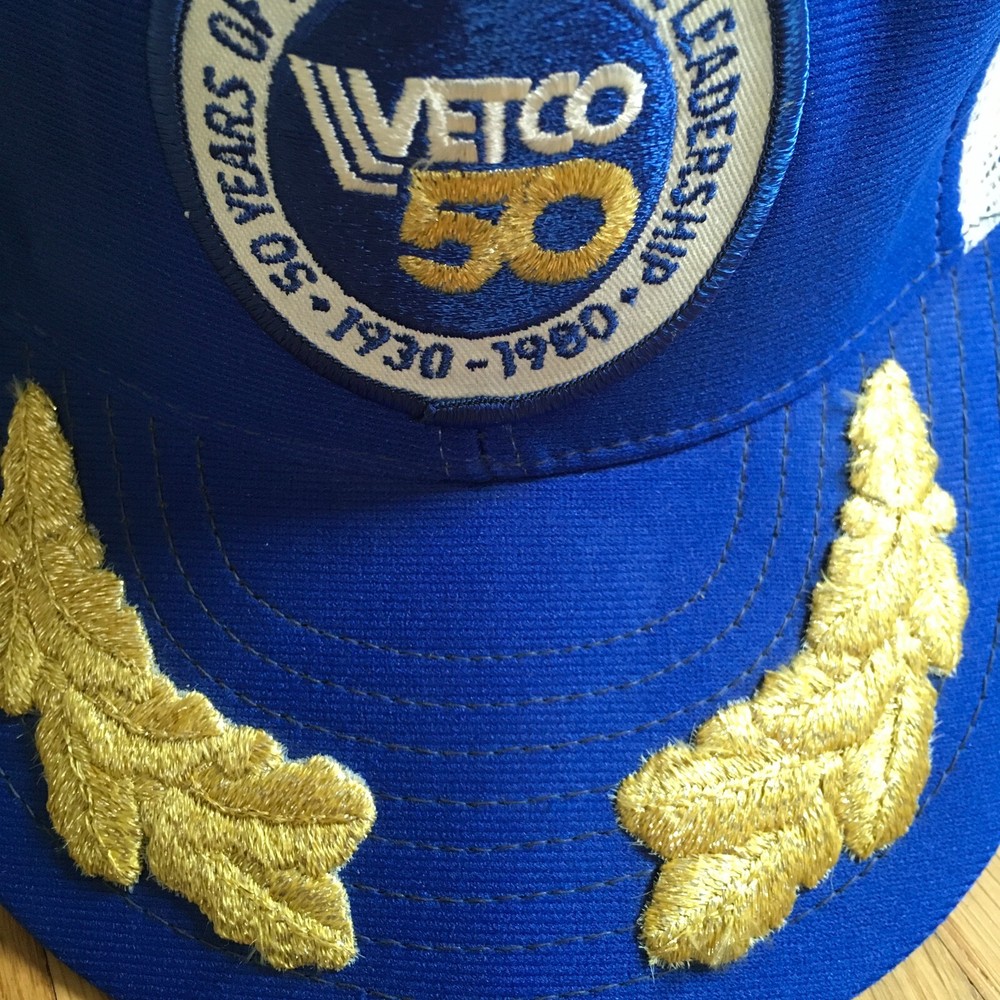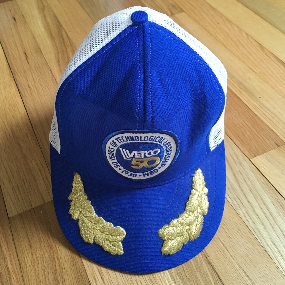This vintage 1980 Vetco baseball cap is a must-have for any collector. With its classic blue color and gold leaf design, this cap is a true gem for anyone who loves retro style. Made in the United States, this cap is a one size fits all and is perfect for both men and women. The snapback closure ensures a comfortable and secure fit, while the vintage Reynolds brand adds a touch of nostalgia. Whether you're a fan of vintage fashion or simply looking for a unique accessory, this cap is sure to impress.