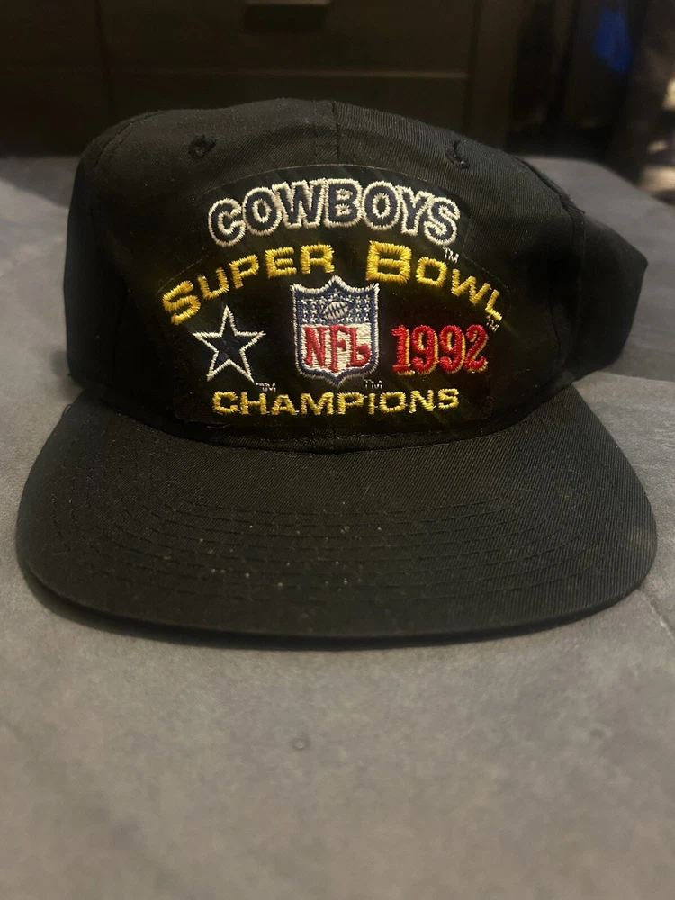 Show off your love for the Dallas Cowboys with this vintage 1992 Super Bowl Champions hat from Sports Specialties. The black snapback cap features the iconic team logo and is a perfect addition to any fan's collection. Made in Korea, this hat is a great way to show your support for the National Football League and the NFL. Whether you're heading to the big game or just want to show off your team spirit, this hat is the perfect accessory. It's one size fits all, so it's a great gift for any fan. Get your hands on this limited edition cap and show off your love for the Dallas Cowboys in style.