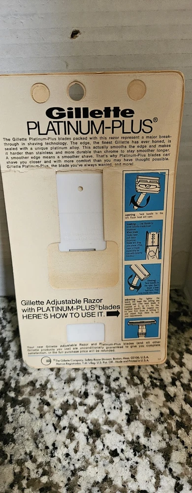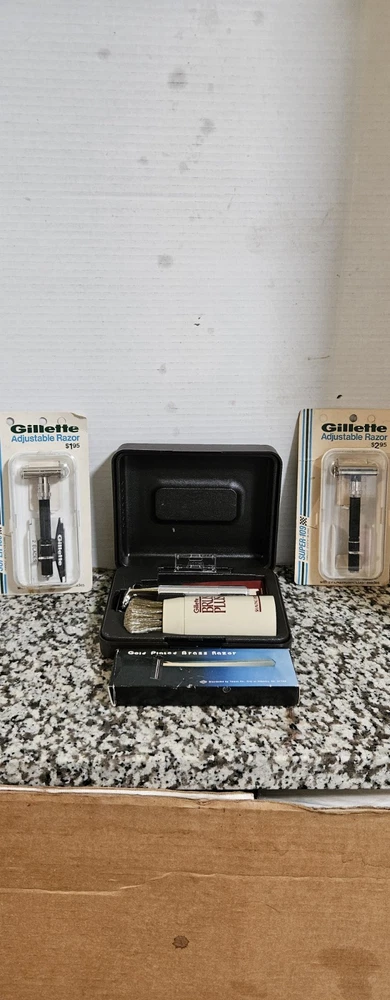 The product is a vintage Gillette adjustable razor from the 60s-70s, featuring a gold plated brass design. It comes with a set of razor blades, providing a classic and nostalgic shaving experience. The adjustable feature allows for a customizable shave, making it a versatile option for collectors or those looking to try a retro shaving method. With the renowned Gillette brand behind it, this razor is sure to offer quality and precision in each shave.