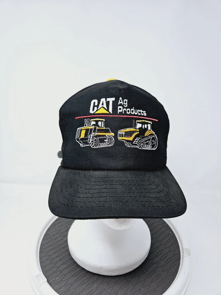 VTG 80s Cat AG Products Black Adjustable Truckers Hat Embroided RARE USA Made