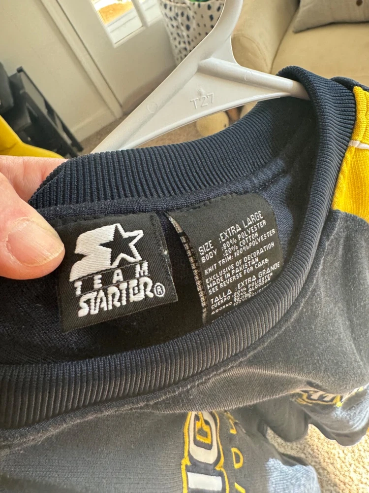 Elevate your wardrobe with the VTG 90s Starter Men's XL Michigan Wolverines Color Block Crewneck Sweatshirt. A vibrant blend of colors sets this sweatshirt apart, capturing the essence of the '90s era. Stitched with care, it features the iconic Michigan Wolverines logo, making it a standout piece for any fan or collector. Crafted for comfort and style, the pullover design ensures easy wearability, while the regular fit offers a relaxed feel. Whether you're out for a casual meet-up or just lounging at home, this vintage sweatshirt brings a touch of nostalgia to your outfit.