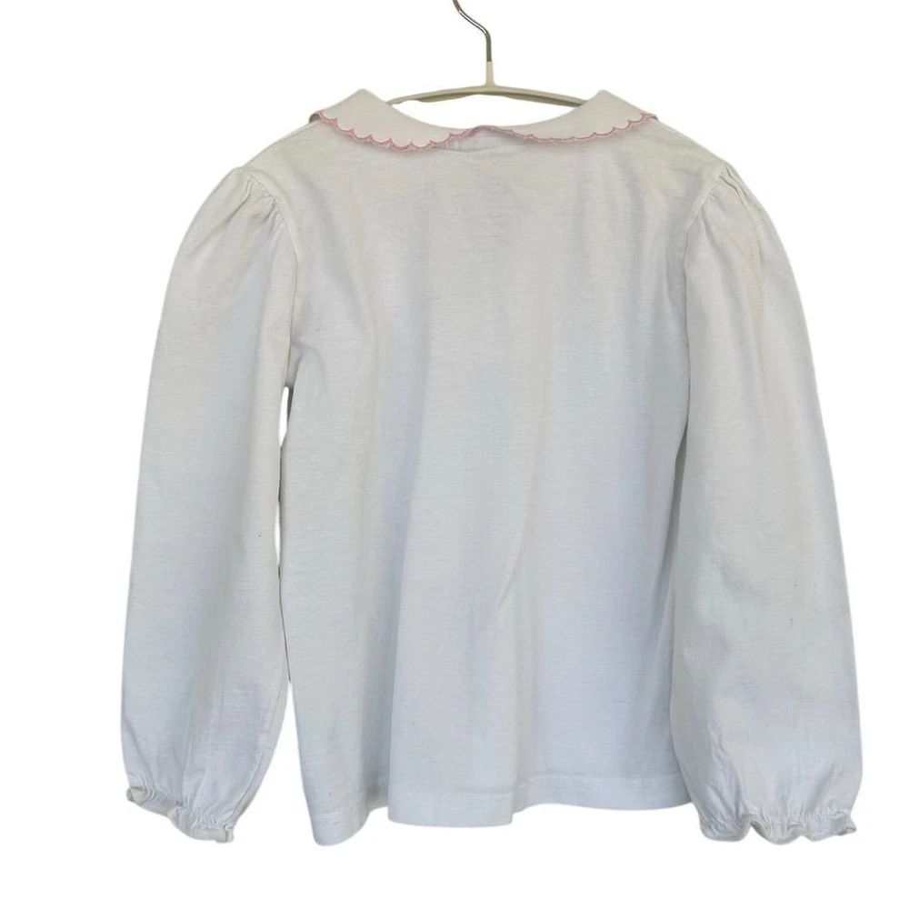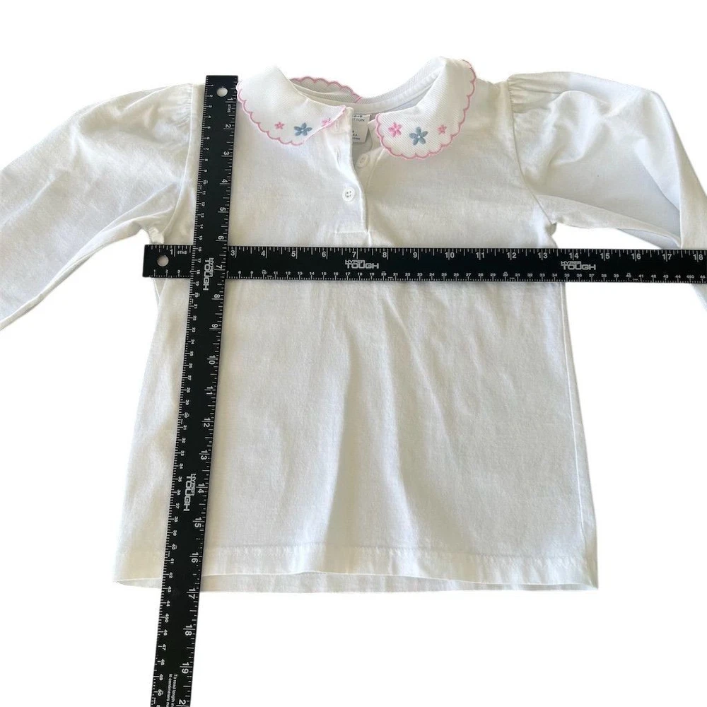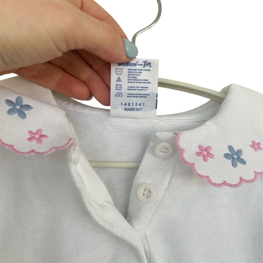 Brighten up your little one's wardrobe with this charming OshKosh B'gosh blouse. Crafted from 100% cotton, this long-sleeve top features a delightful floral pattern that adds a touch of whimsy to any outfit. The scallop collar and elasticized cuffs provide a sweet, classic look, perfect for casual outings or family gatherings during the fall season. Pair it with jeans or a skirt for a versatile ensemble. This blouse is machine washable for easy care. The item is in good condition but has some flaws. Discoloration from age noted please review photos Keywords: OshKosh B'gosh, girls blouse, floral pattern, long sleeve, scallop collar, elasticized cuffs, fall fashion, casual wear, machine washable, size 6, white blouse, cotton blouse, girls clothing, floral theme, kids fashion. Brand: OshKosh B'gosh Color: White Department: Girls Size: 6 Type: Blouse Sleeve length: Long Sleeve Theme: Floral Material: 100% Cotton Pattern: Floral Features: Elasticized Cuffs, Scallop Collar Season: Fall Occasion: Casual Garment care: Machine Washable Smoke free household. Pet friendly household. Please see pictures for measurements. Feel free to reach out with any questions and we’ll try to answer as best we can.