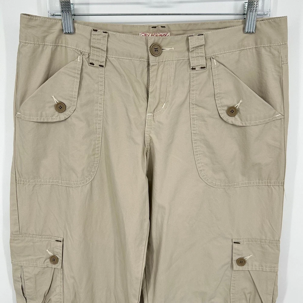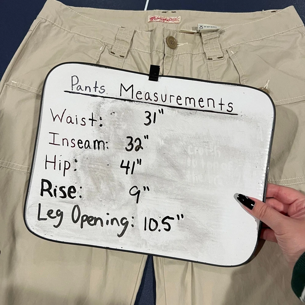 Vintage 90s y2k women's cream Union Bay baggy wide leg cargo carpenter skater punk trouser pants -trashy y2k, lindsey lohan, utility Waist: 31" Inseam: 32" Hip: 41" Rise: 9" Leg Opening: 10.5" Tag Size: 9 Item is in good used condition. Look at photos to see the condition. All, if any, flaws have been pictured. See the last photo for measurements. The waist and hip measurements are measured flat and then multiplied by 2 to get the full measurement around. Please know which measurements fit you prior to purchasing, and don’t just rely on the size tag. Feel free to ask any questions! ***Item is cross posted on several platforms***