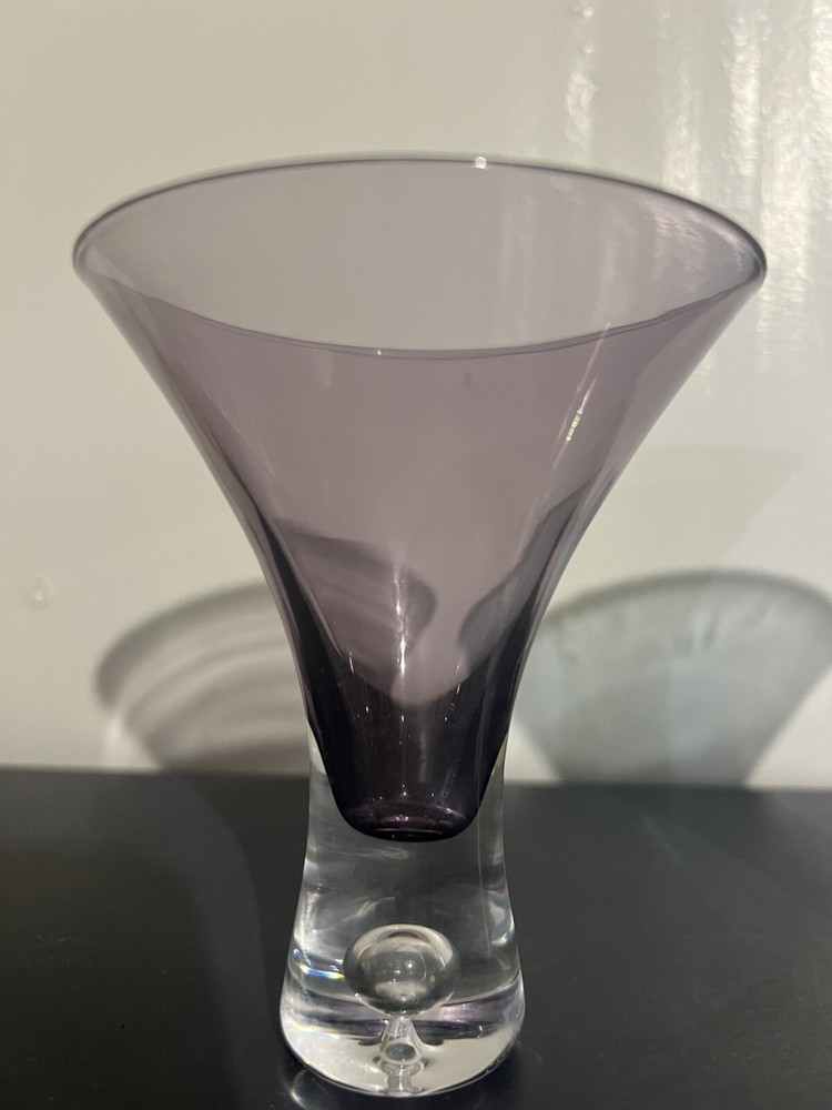 The VTG Artland Celebration set includes 4 jewel tone martini or wine glasses with a unique bubble base design. This glassware set is perfect for all occasions and features a celebrity theme, making it a stylish and eye-catching addition to any home bar or entertaining setup. Made of high-quality glass, these wine glasses are designed by Artland and are sure to impress guests with their vibrant colors and elegant design.Preowned