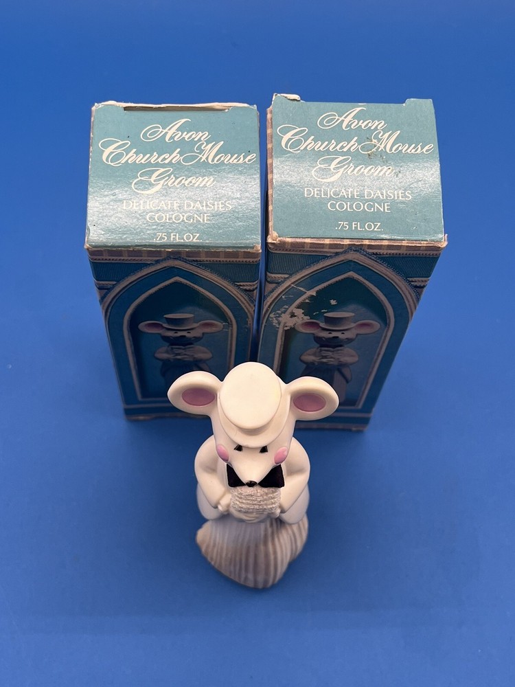 Lot 2 VTG Avon Church Mouse Groom - Delicate Daisies Cologne .75 Fl Ozs.