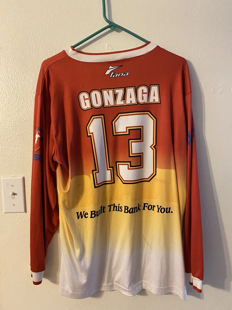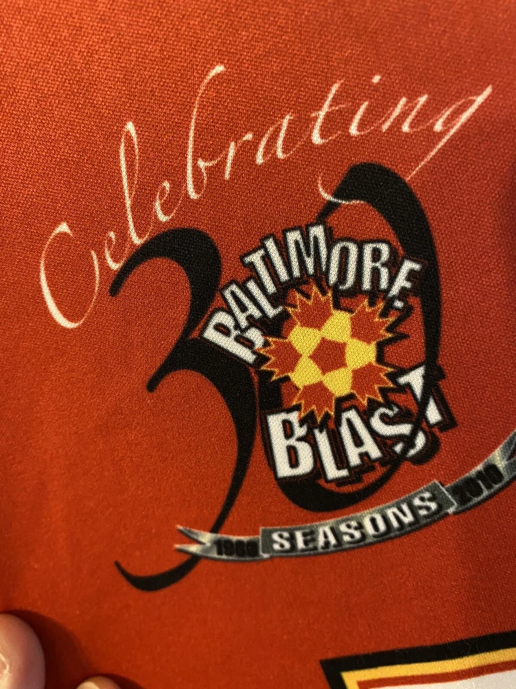 LUCIO GONZAGA GAME WORN JERSEY BALTIMORE BLAST JERSEY SHOWS HEAVY USE AND IS HAND SIGNED BY GONZAGA JERSEY HAS 30th anniversary patch Check out my other listings for many other rare soccer items